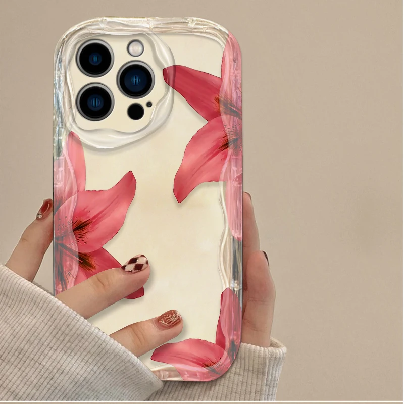 Funda de teléfono 3D transparente Sakura roja realista para iPhone 16 16E 15 14 13 12 11 Pro Max X XS X S Max XR SE 2020 SE4 7 8 funda de silicona