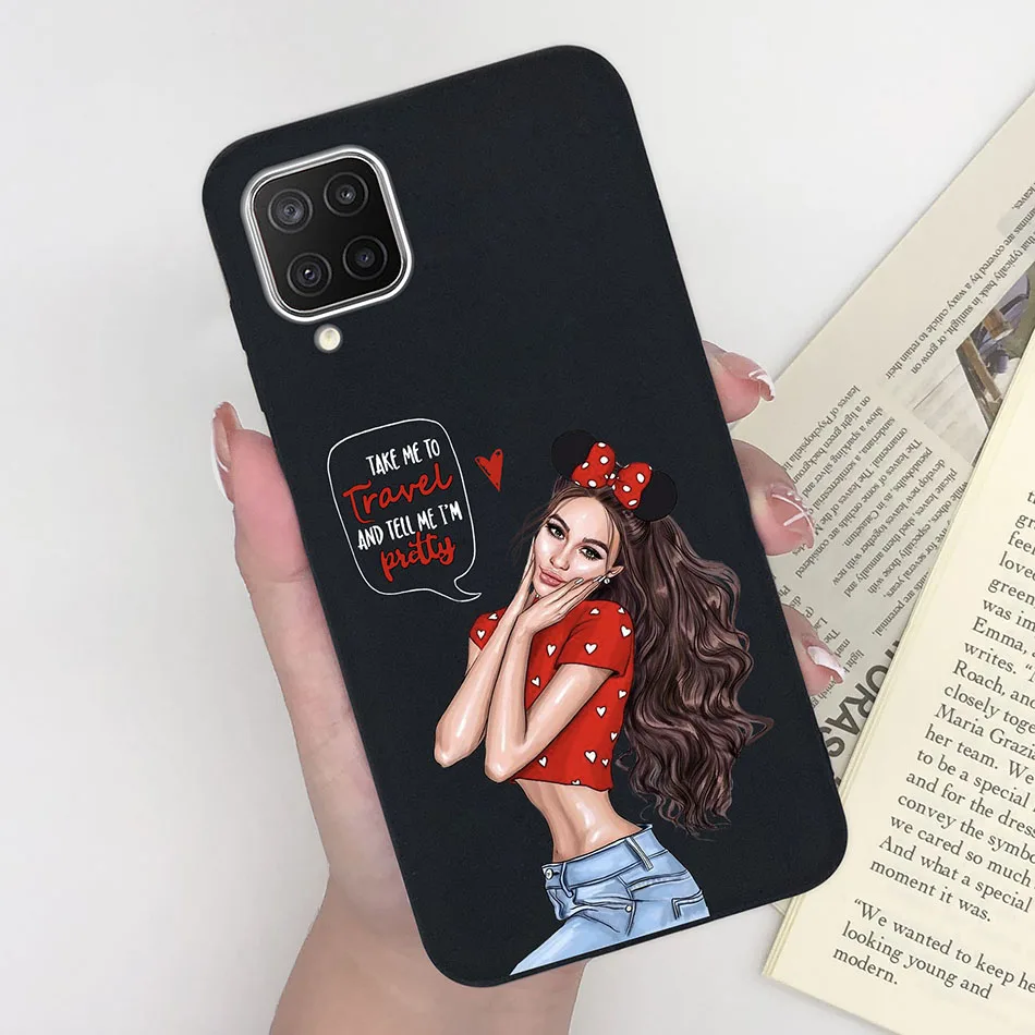Comprar Funda de teléfono a la moda para Samsung Galaxy A12 M12 F12 Cool Girl, Funda trasera de silicona suave con patrón de dibujos animados de 6,5 pulgadas, nueva