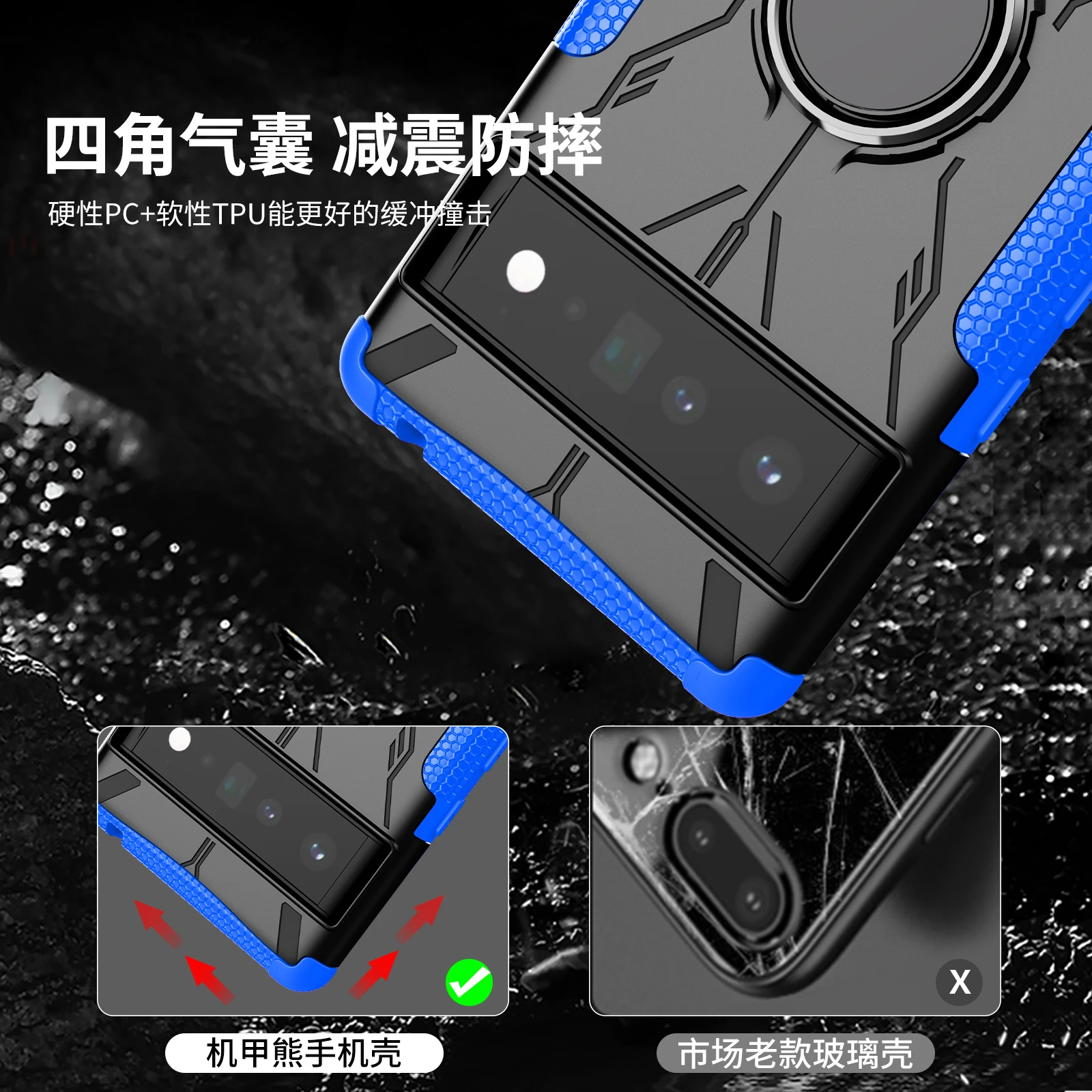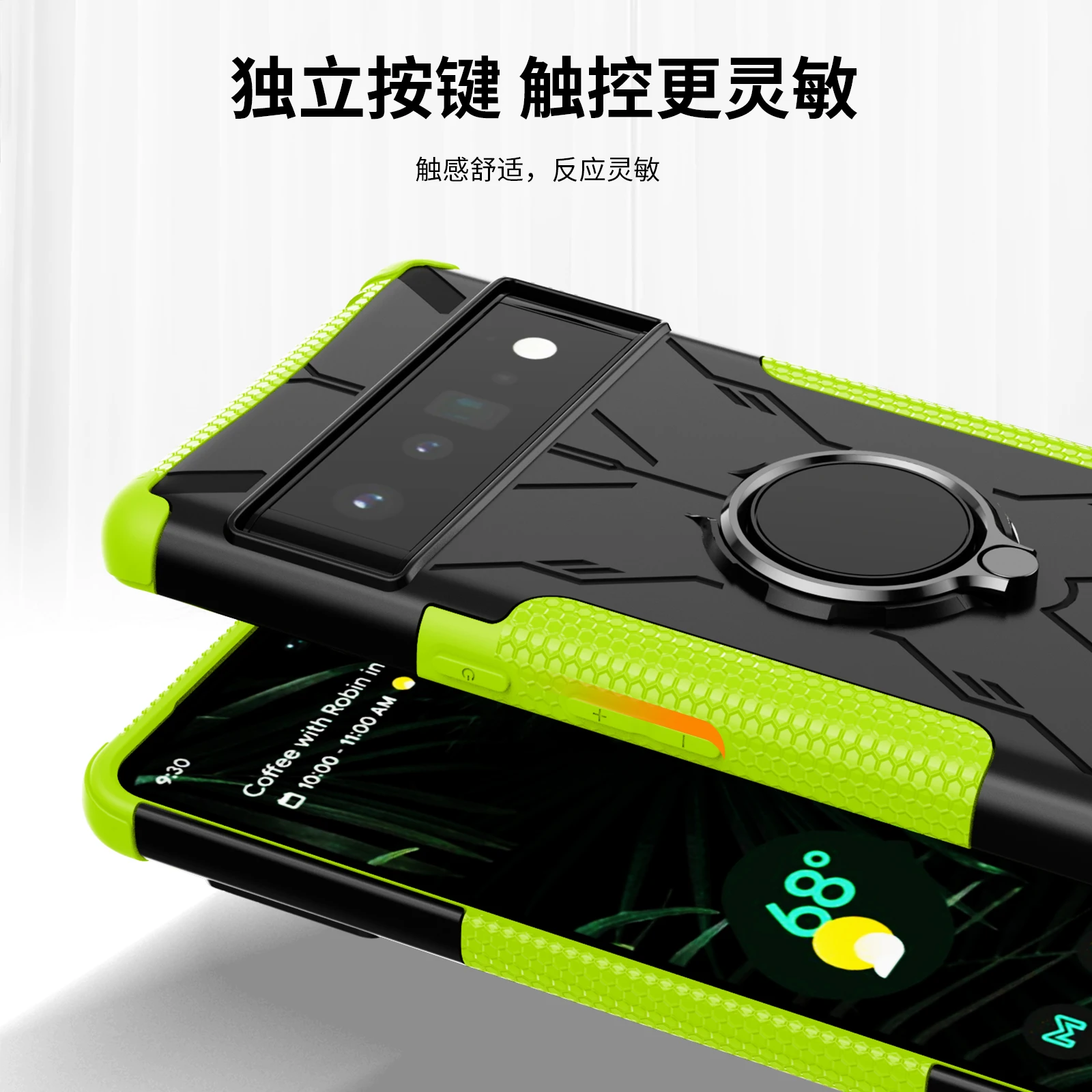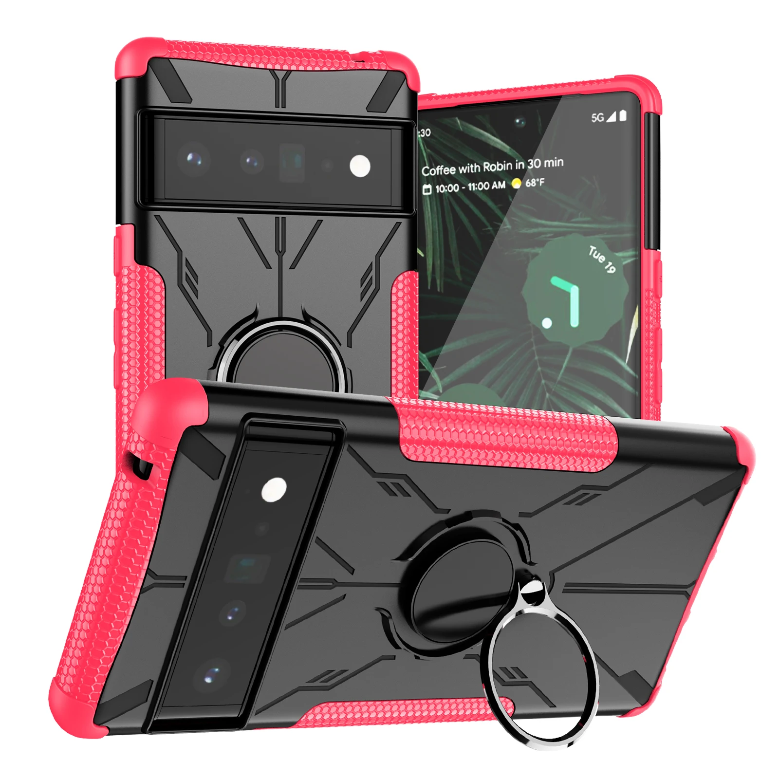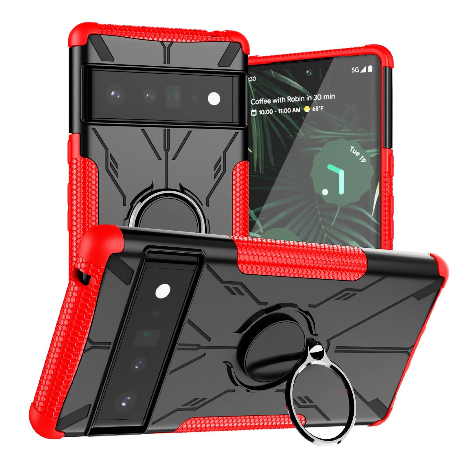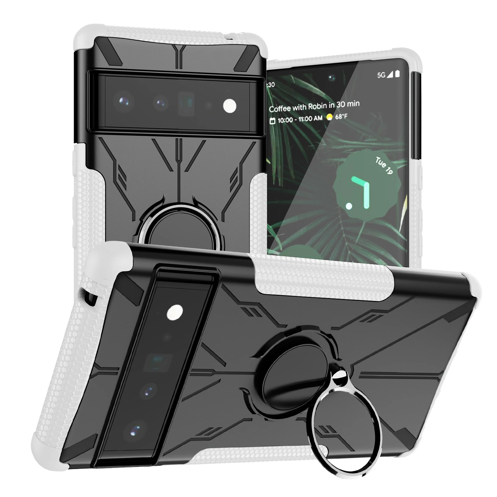 Funda de teléfono a prueba de golpes con anillo de armadura para Google Pixel 6 Pro Pixel 6A Pixel 6, funda trasera de TPU, parachoques, soporte de oso de Robot