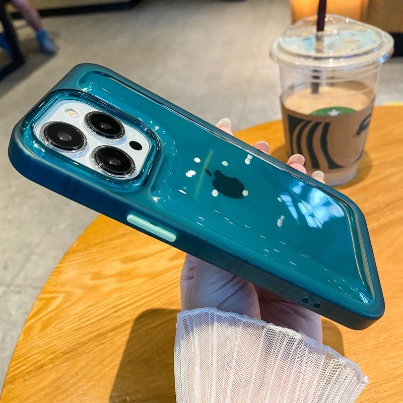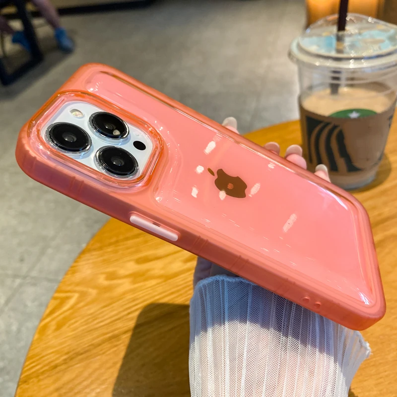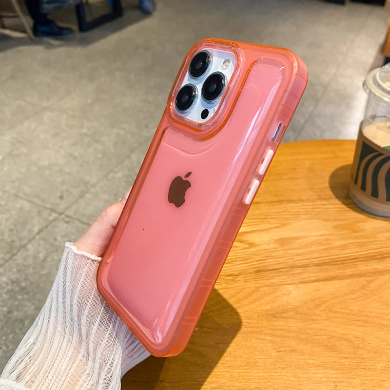 Funda de teléfono a prueba de golpes para iPhone, carcasa trasera de silicona suave de Color sólido de acrílico transparente para iPhone 14 13 12 11 Pro Max XS XR X 14Plus 13