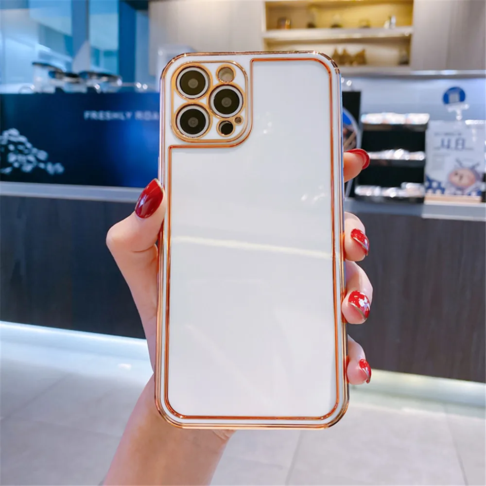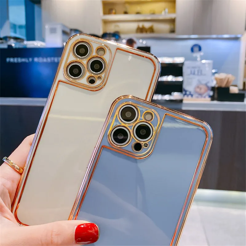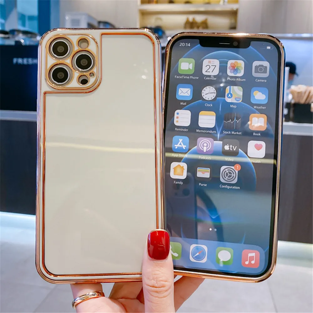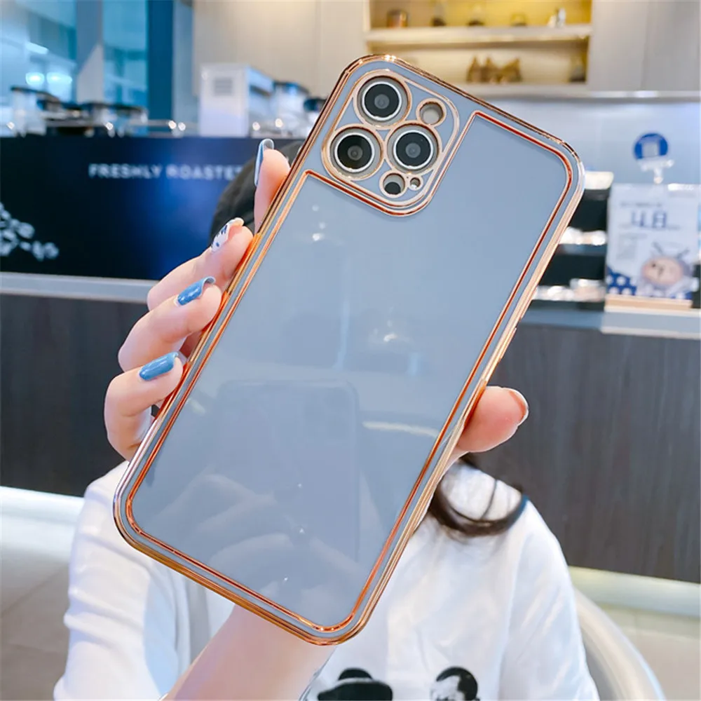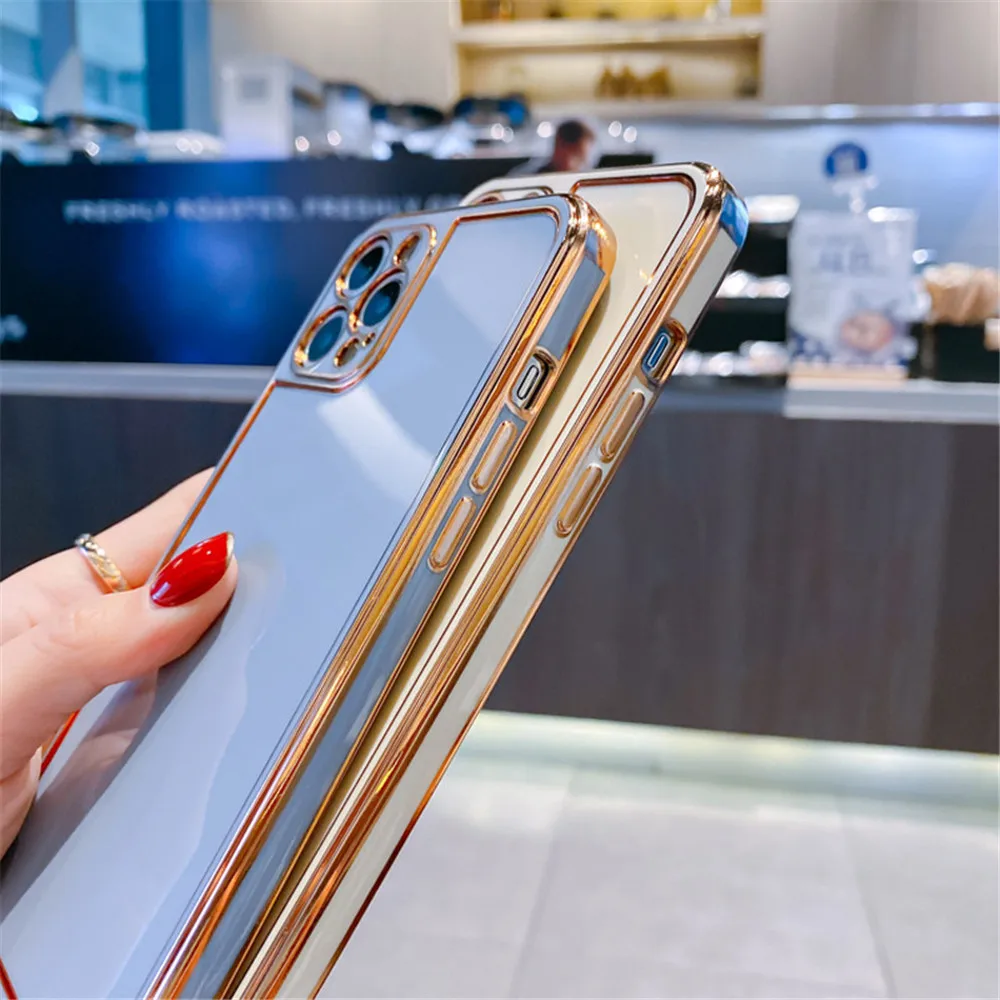 Funda de teléfono a prueba de golpes para iPhone, carcasa trasera de TPU suave y sólido de lujo galvanoplastia para iPhone 11 12 Pro Max Mini X XR XS Max 7 8 Plus SE 2020