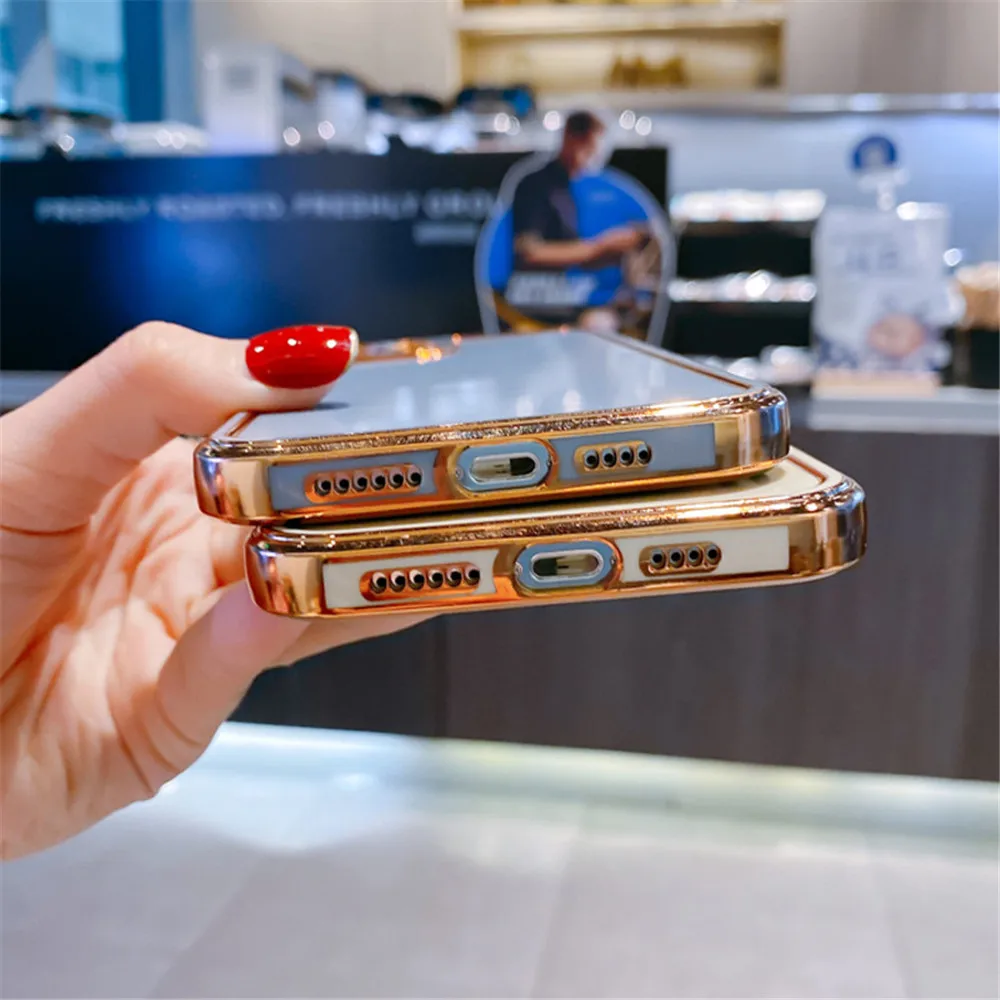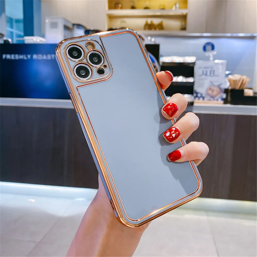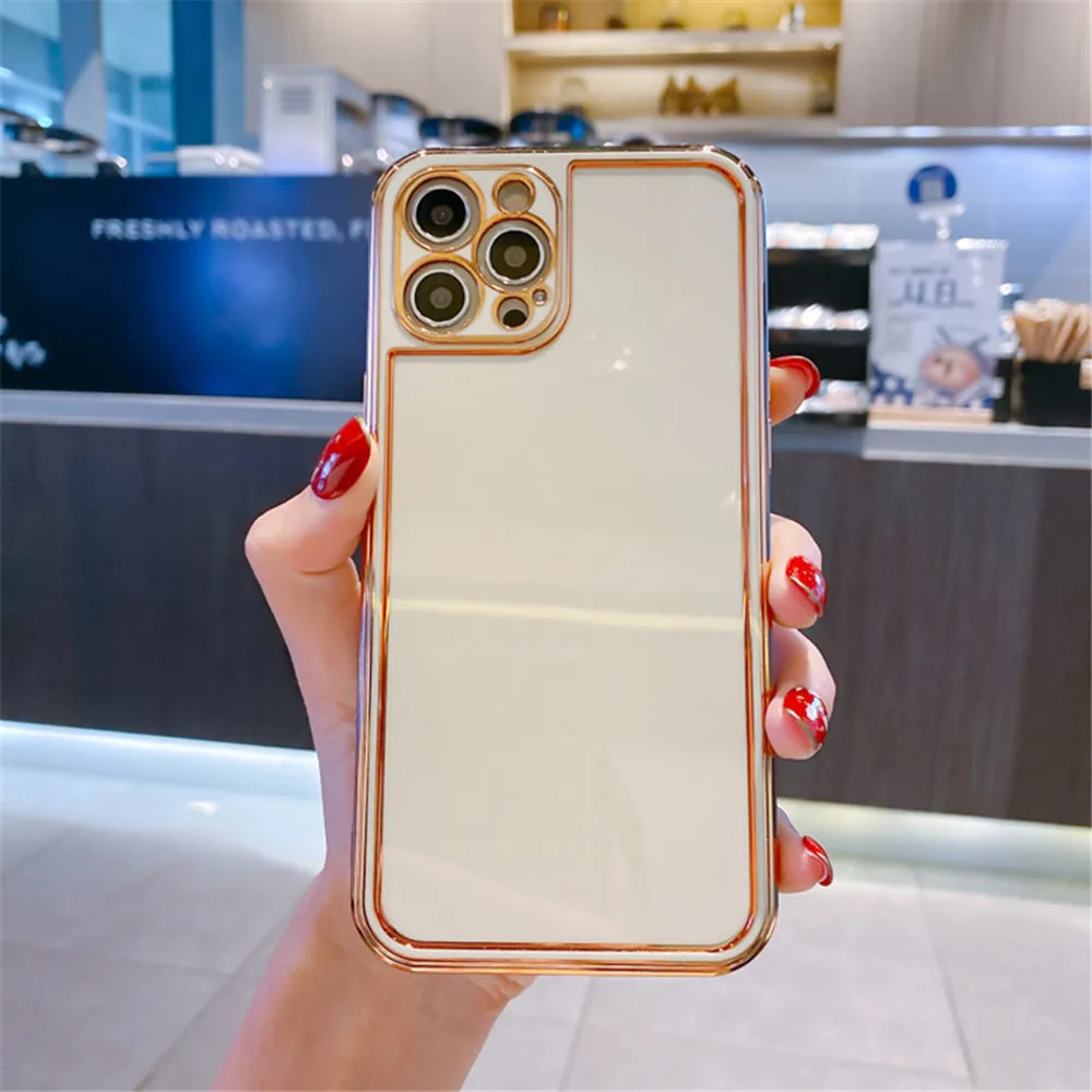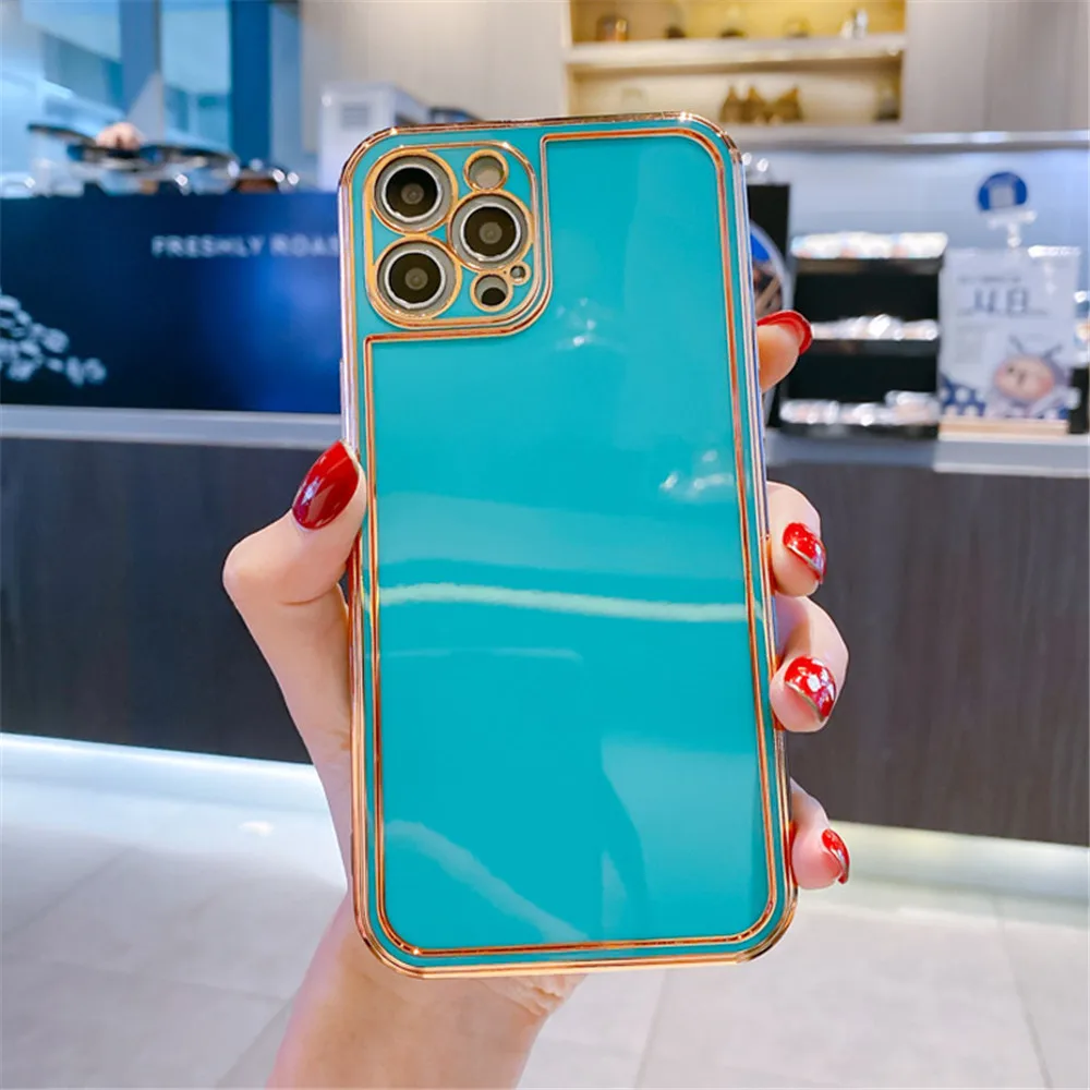 Funda de teléfono a prueba de golpes para iPhone, carcasa trasera de TPU suave y sólido de lujo galvanoplastia para iPhone 11 12 Pro Max Mini X XR XS Max 7 8 Plus SE 2020