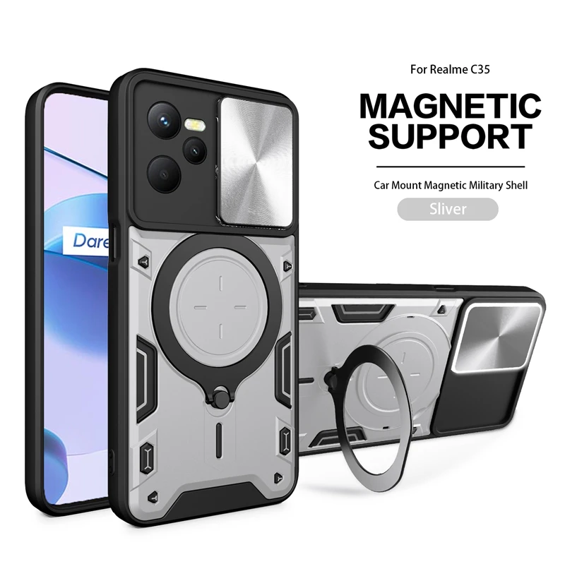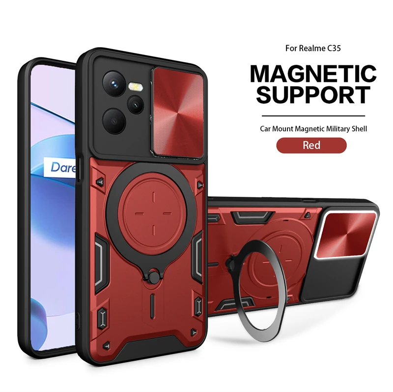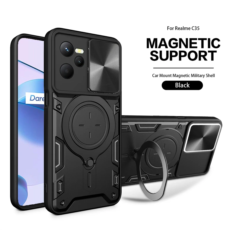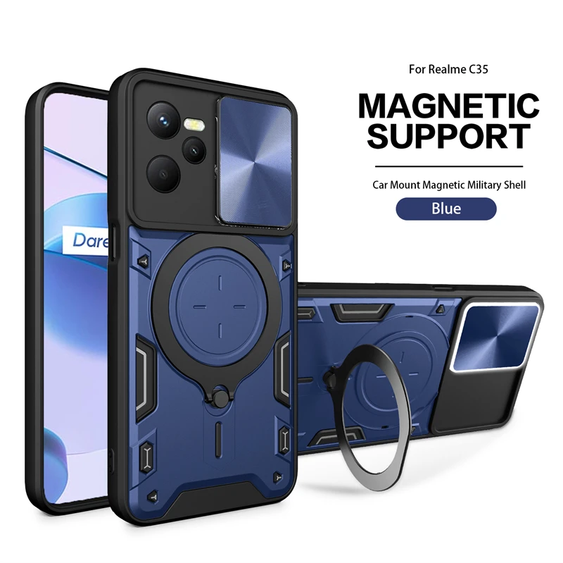 Funda de teléfono a prueba de golpes para Oppo Realme C35, carcasa trasera con anillo de soporte magnético para coche, carcasa deslizante para cámara, armadura Realme C35 C 35 RealmeC35