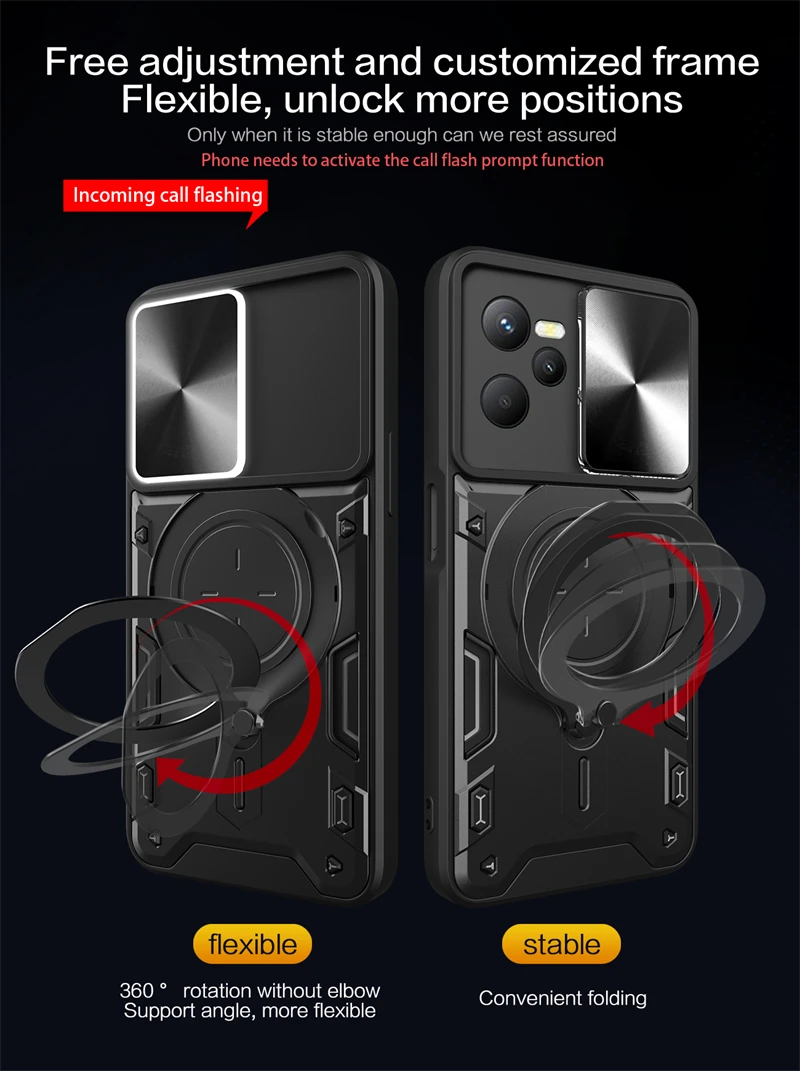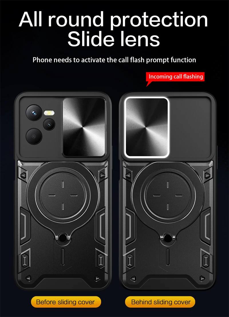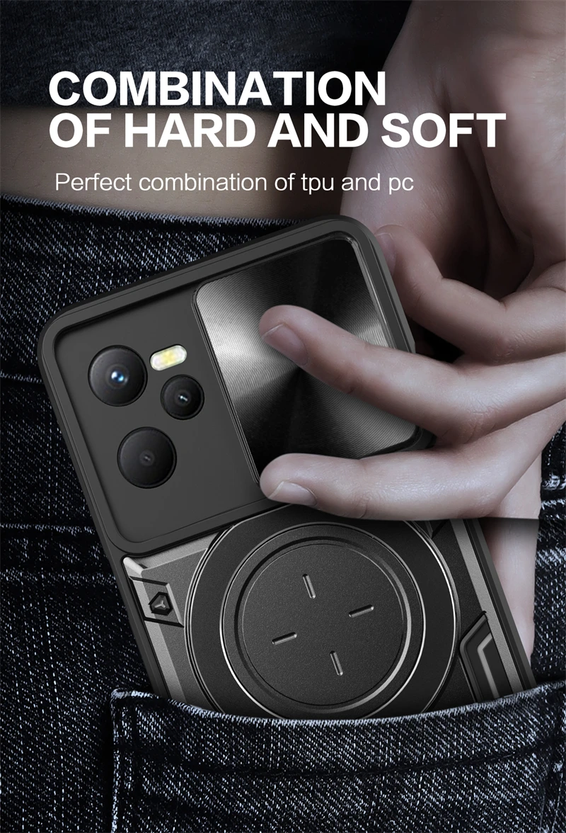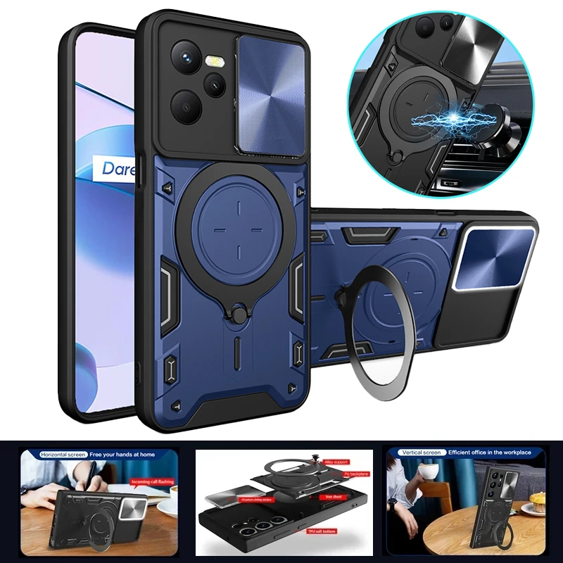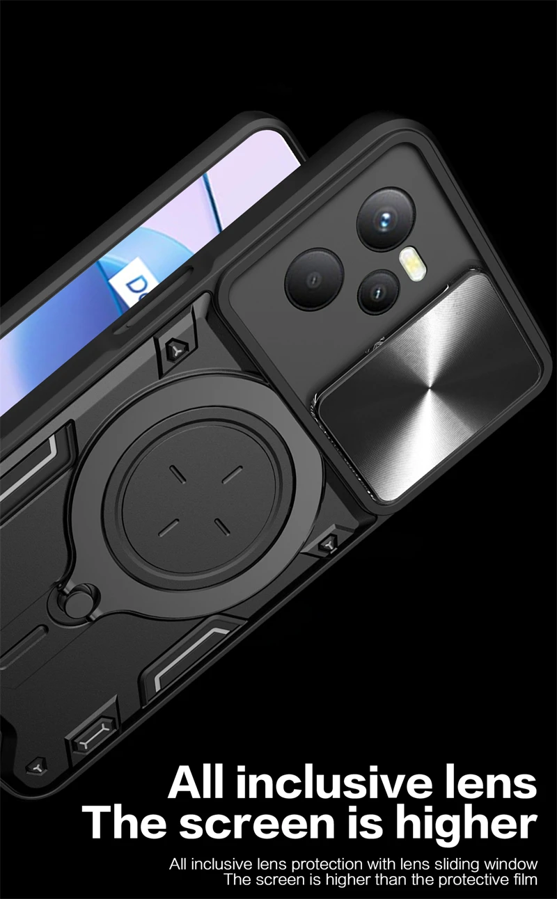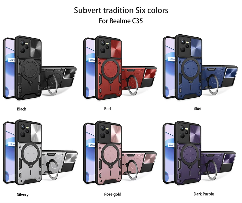 Comprar Funda de teléfono a prueba de golpes para Oppo Realme C35, carcasa trasera con anillo de soporte magnético para coche, carcasa deslizante para cámara, armadura Realme C35 C 35 RealmeC35