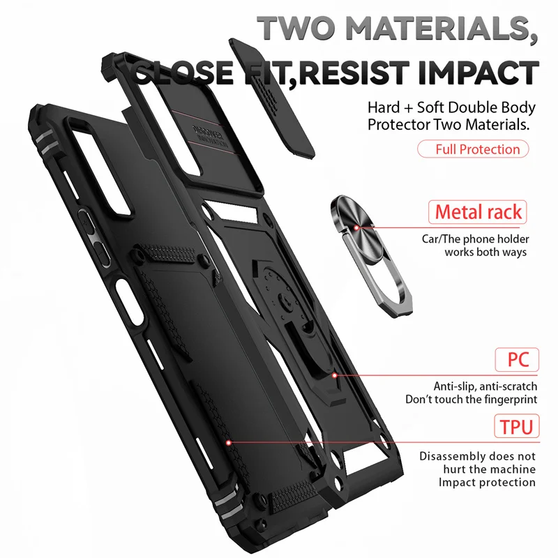 Comprar Funda de teléfono a prueba de golpes para Vivo Y20, carcasa protectora de lente de cámara deslizante, soporte de anillo magnético