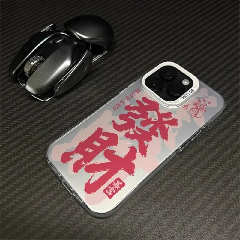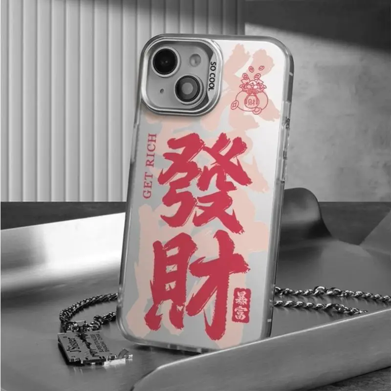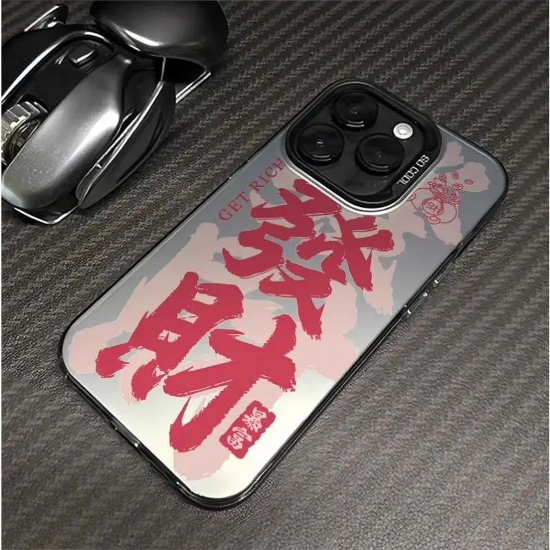 Comprar Funda de teléfono acrílica con bendiciones de dinero de Año Nuevo para iPhone 13Mini 14 15 Plus 16 Pro Max, funda protectora de pantalla a prueba de golpes