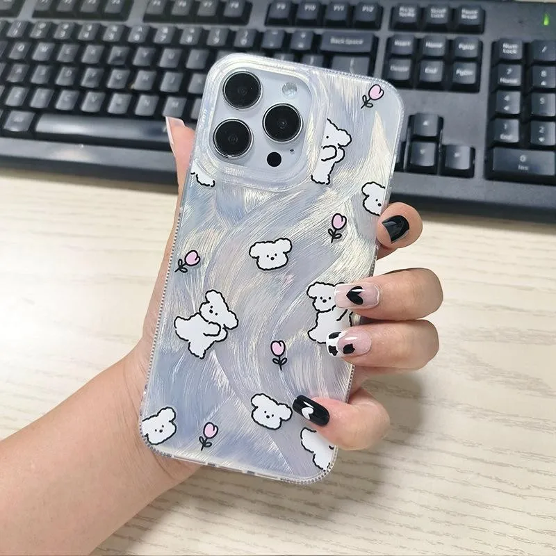 Comprar Funda de teléfono acrílica con bonito Perrito para iPhone 16 15 ProMax 14 13 12 Mini 11 Pro XS XR 7 8 Plus Protector de pantalla a prueba de golpes