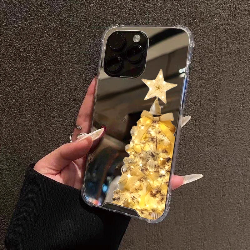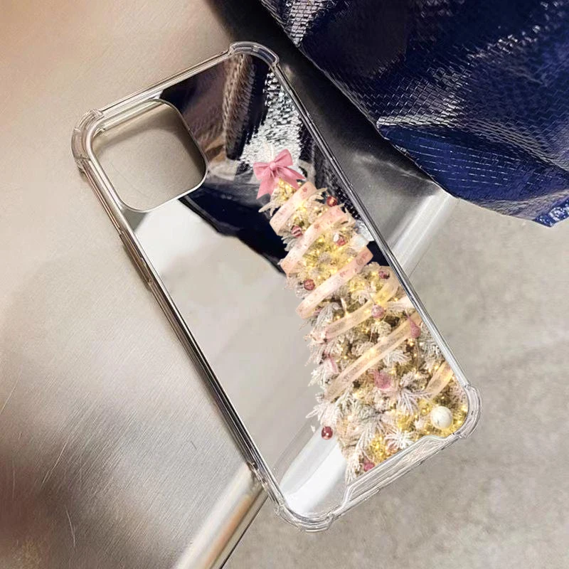 Funda de teléfono acrílica con espejo y patrón de árbol de Navidad para iPhone 17 Pro Max 16 15 14 13 12 11 17 Air XS X XR 7 8 Plus, funda protectora