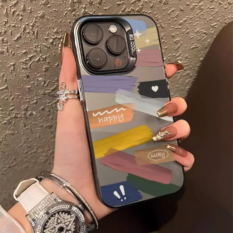 Comprar Funda de teléfono acrílica con diseño de Graffiti colorido para iPhone 13Mini 14 Pro 15 Plus 16 ProMax, carcasa protectora de pantalla a prueba de golpes