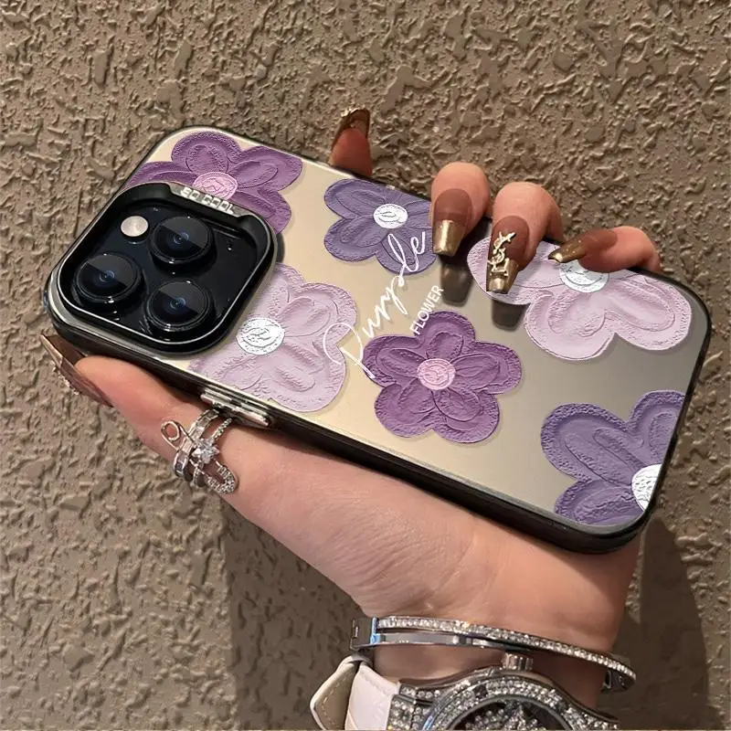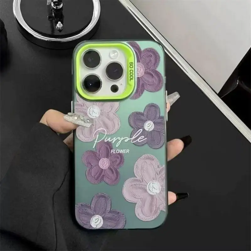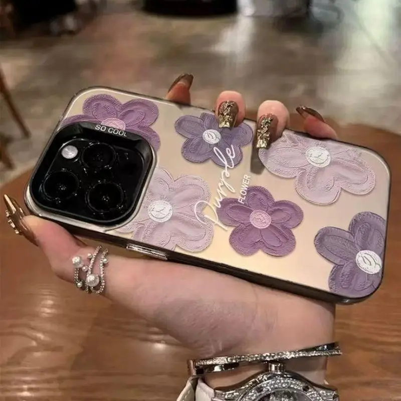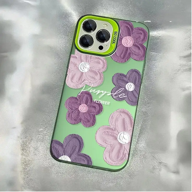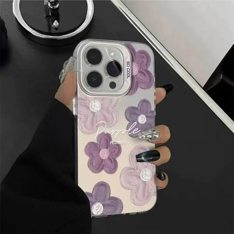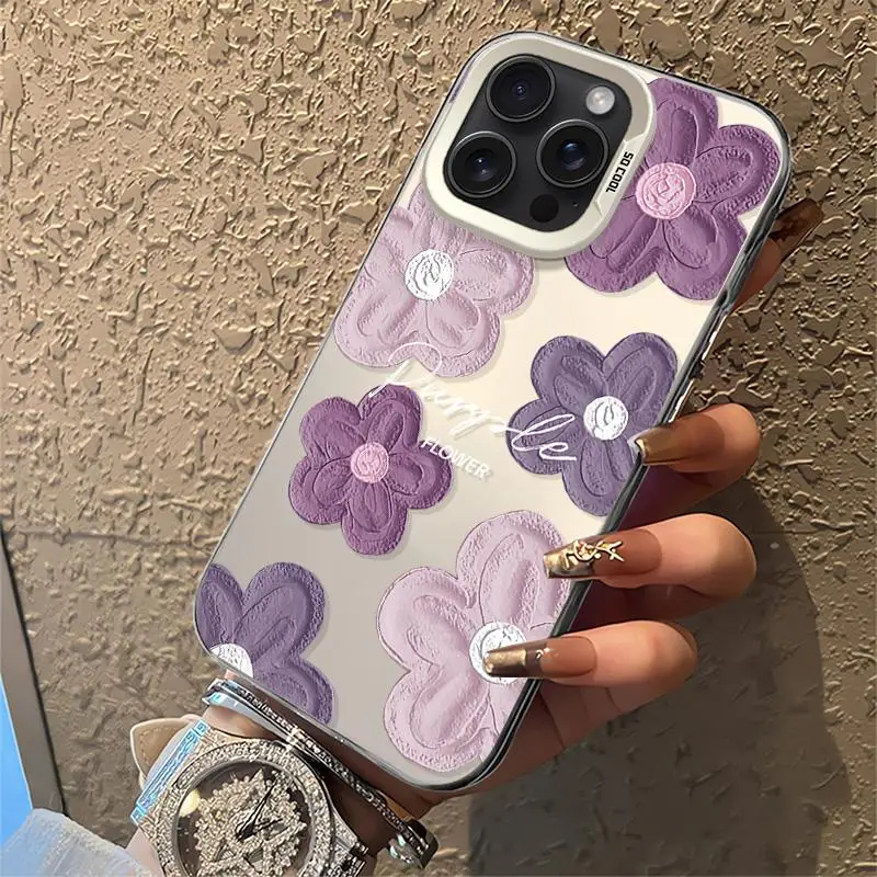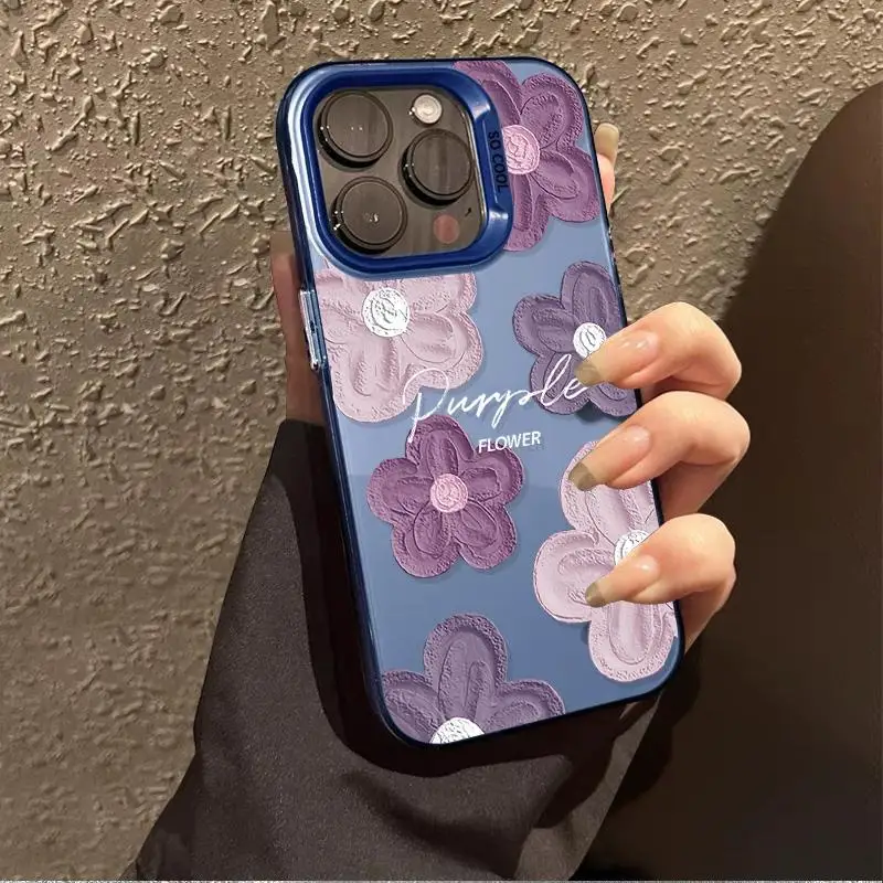 Comprar Funda de teléfono acrílica con flores moradas para iPhone 7 8 Plus XR XS 11Pro 12 13 Mini 14 Pro Max 15 16E carcasa protectora de pantalla a prueba de golpes