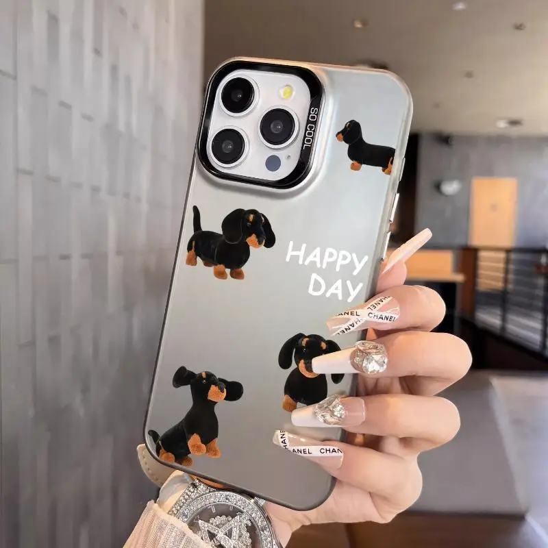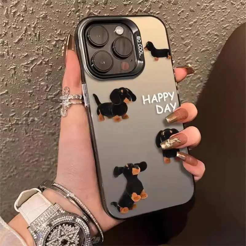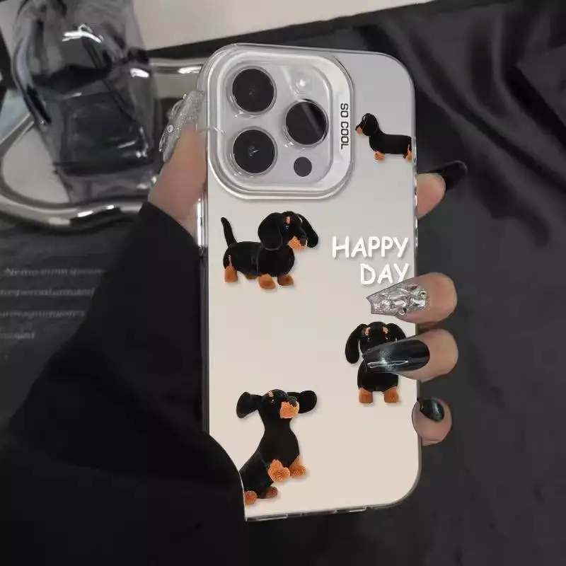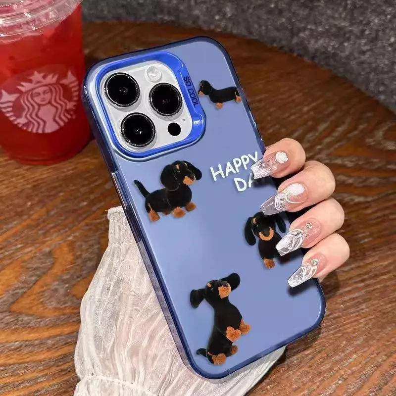 Comprar Funda de teléfono acrílica con forma de cachorro para iPhone 16E 15 14 Pro Max 12 13 Mini 11 Pro XS XR 7 8 Plus, Protector de pantalla a prueba de golpes