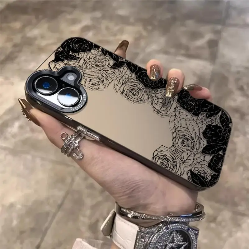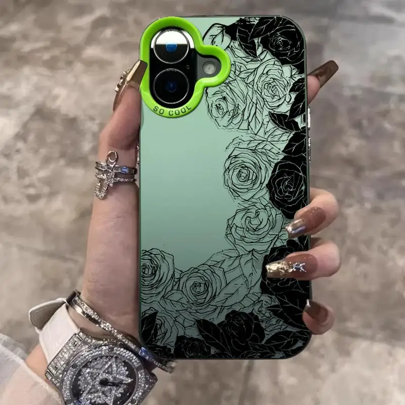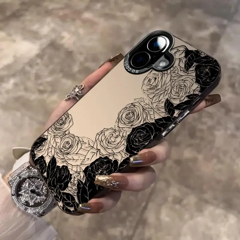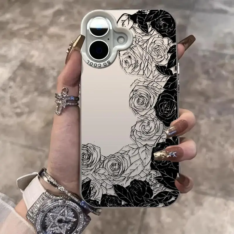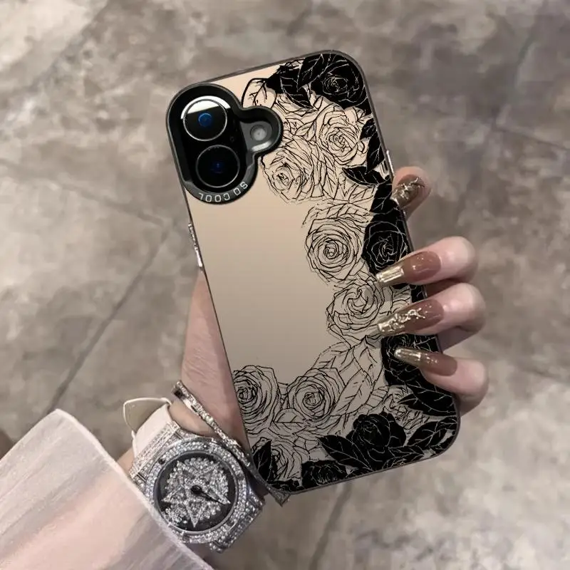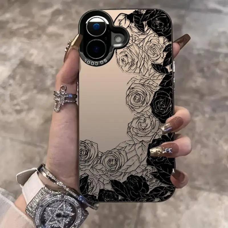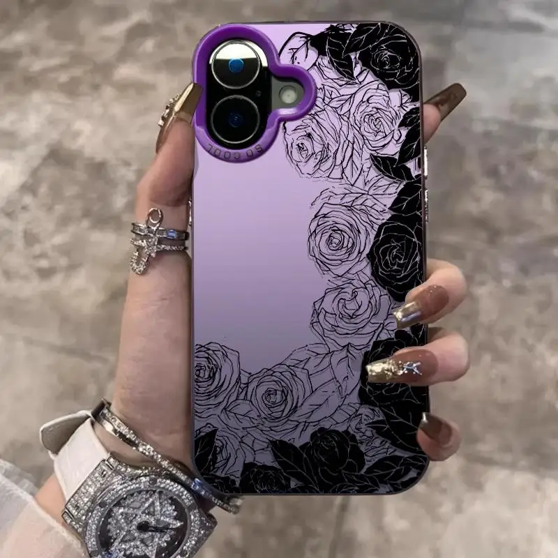 Comprar Funda de teléfono acrílica rosa negra para iPhone 16E 15 Pro Max 14Pro 13 12 Mini 11 Pro XS XR 7 8 Plus Protector de pantalla a prueba de golpes