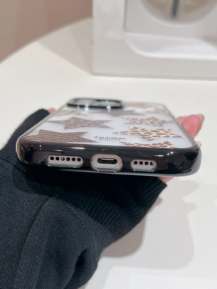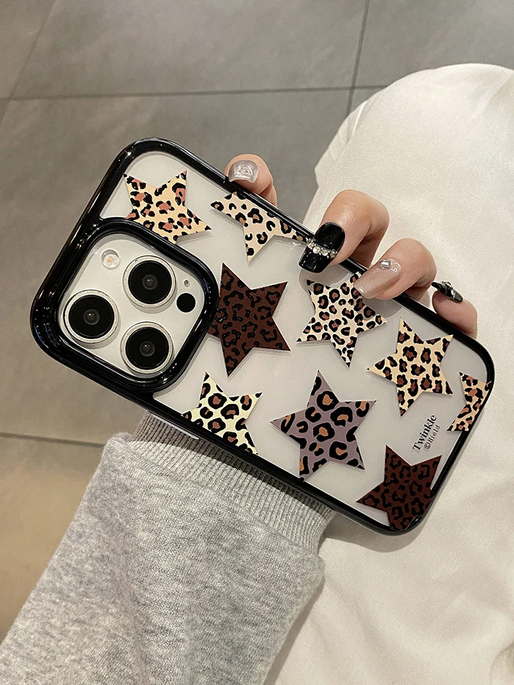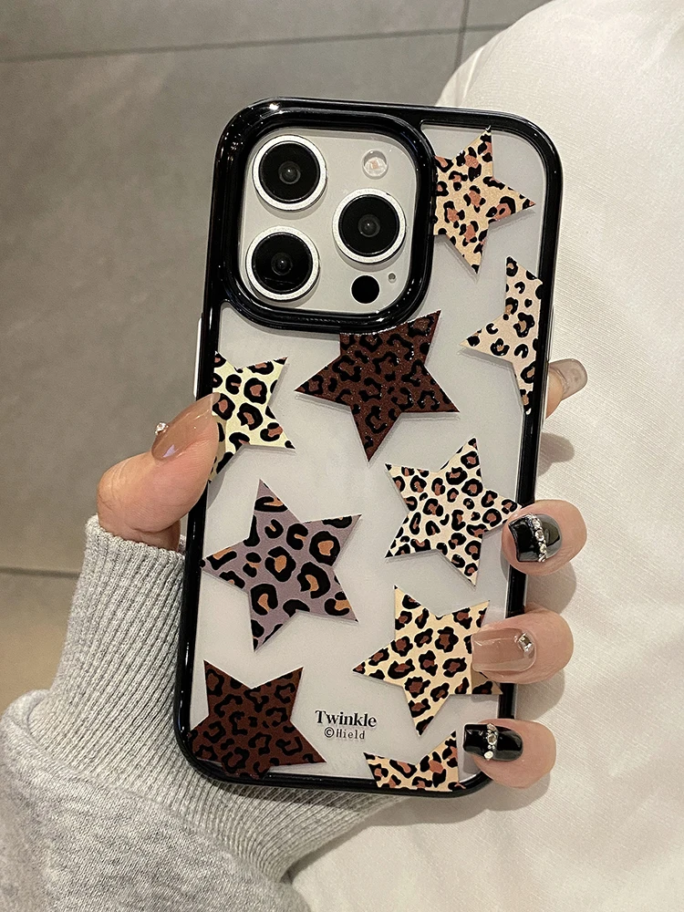 Funda de teléfono acrílica transparente con estampado de leopardo y cinco punteros y estrellas para iPhone 17 Pro Max 16 15 14 13