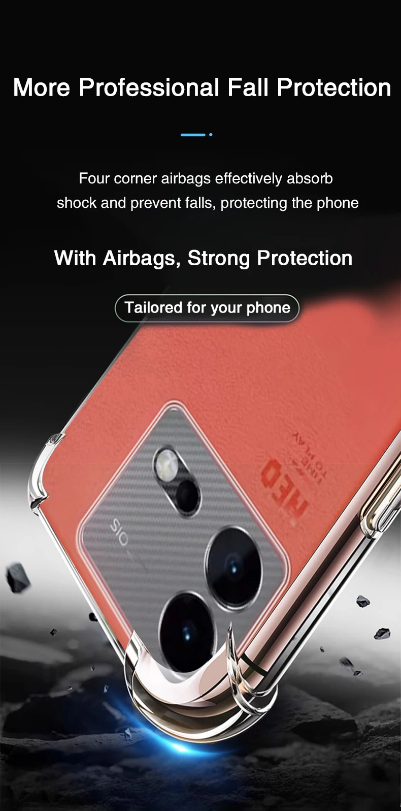Comprar Funda de teléfono Airbag a prueba de golpes para VIVO iQOO Neo8 Neo 8 Pro 8Pro 5G, fundas traseras finas de silicona transparente, antigolpes, simplicidad Original