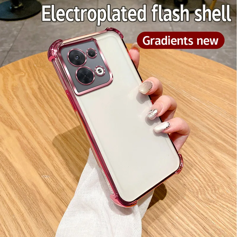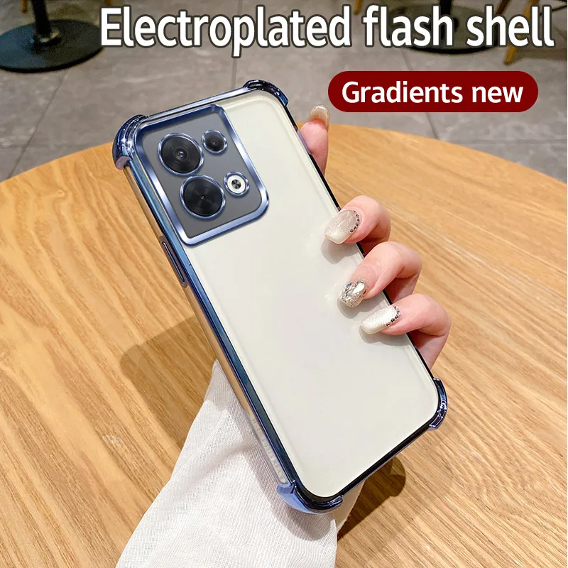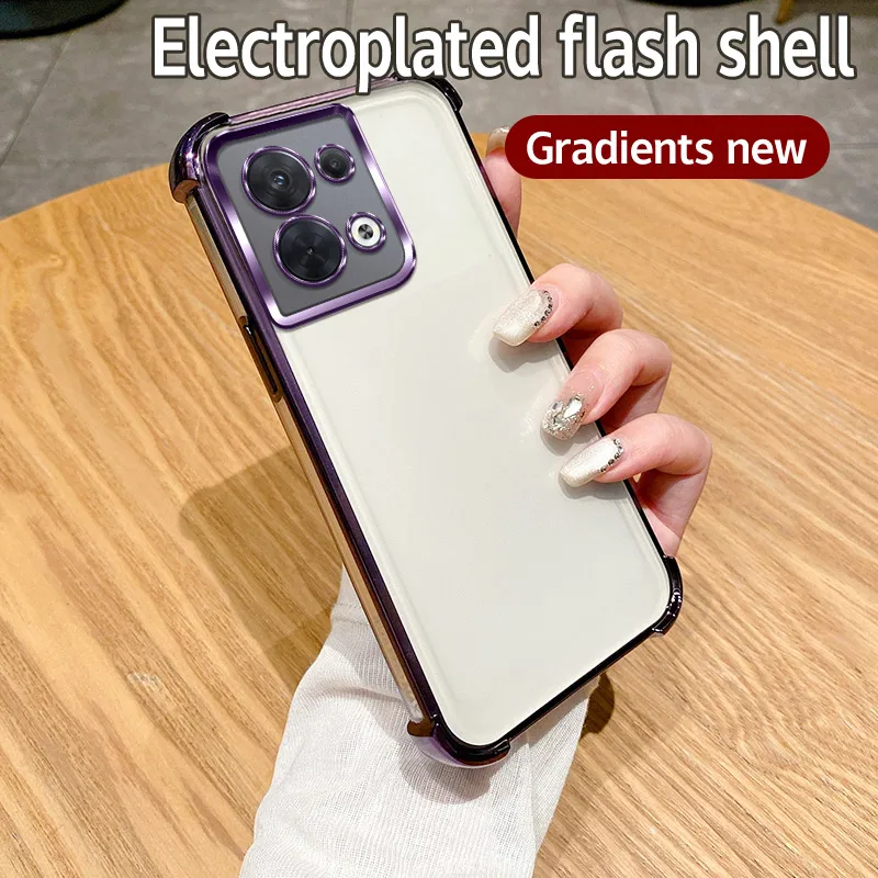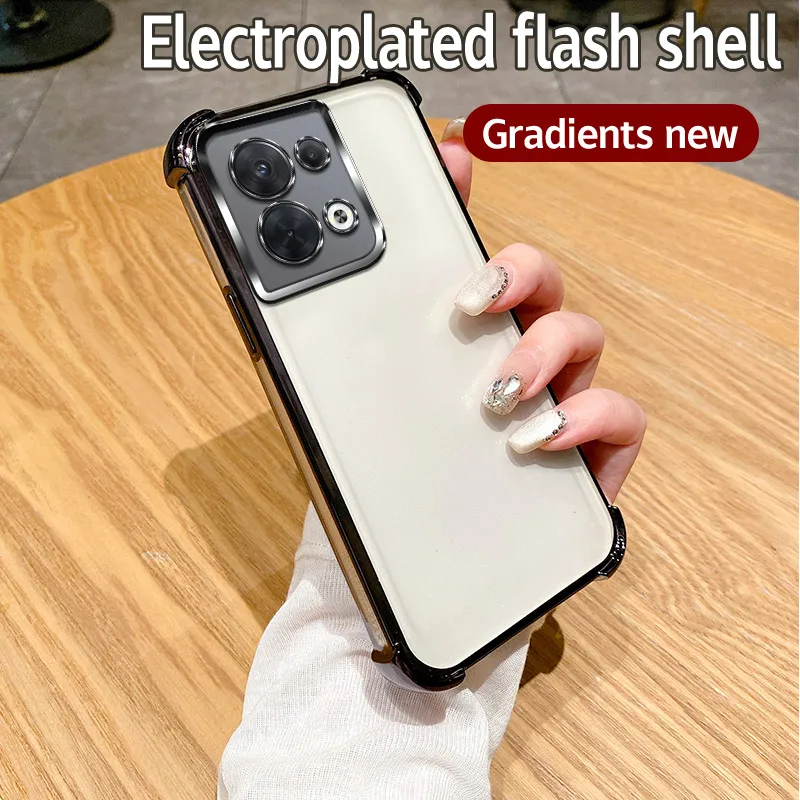 Comprar Funda de teléfono Android galvanizada de 4 esquinas a prueba de golpes para OPPO Reno8 5G, cubiertas mate duraderas anticaída de grado militar