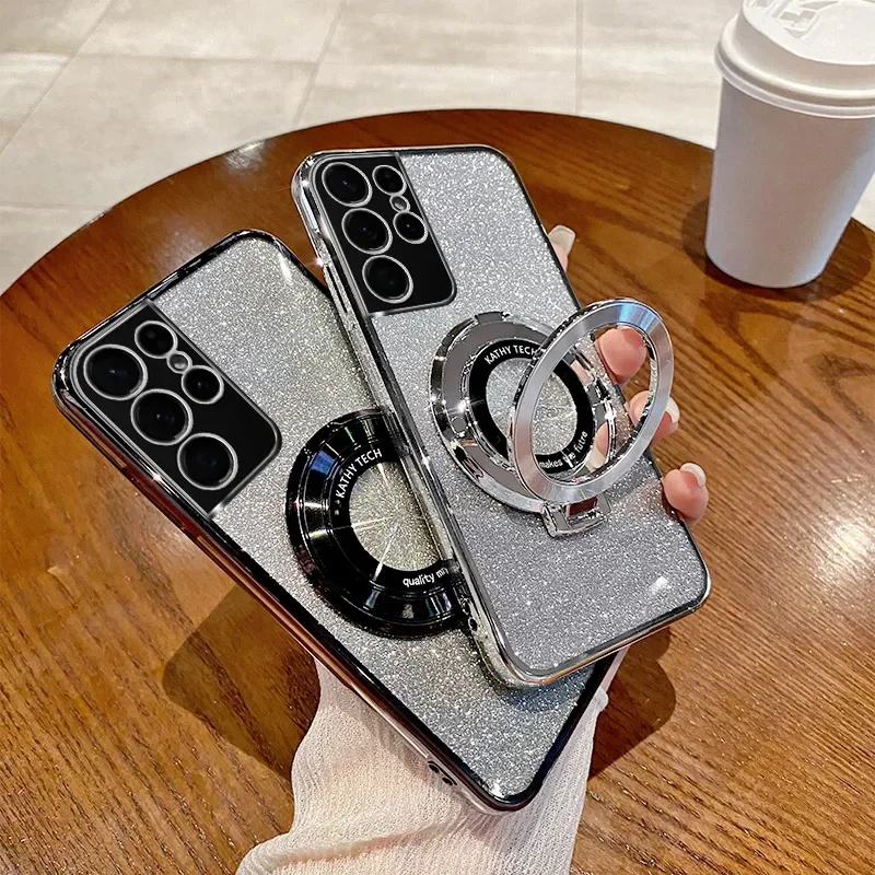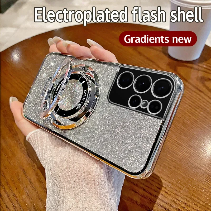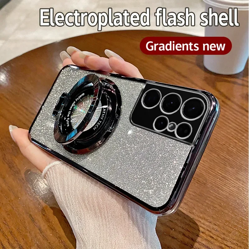 Funda de teléfono con anillo de CD con purpurina gradiente para Samsung Galaxy S9 S10 S25 S21 S22 S23 FE S24 Plus Note 10 20 Ultra S24 A54 5G, funda suave