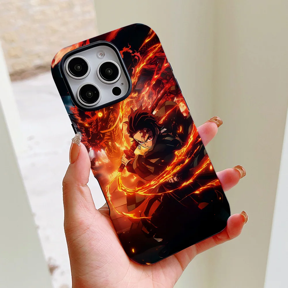 Funda de teléfono Anime Demon Slayer para iPhone 16, 15, 14, 13, 12, 11 Pro Max Plus, funda trasera magnética de lujo de doble capa