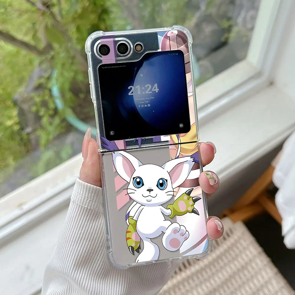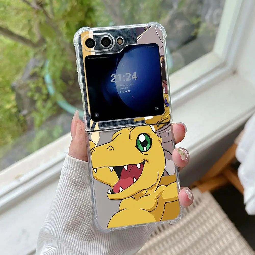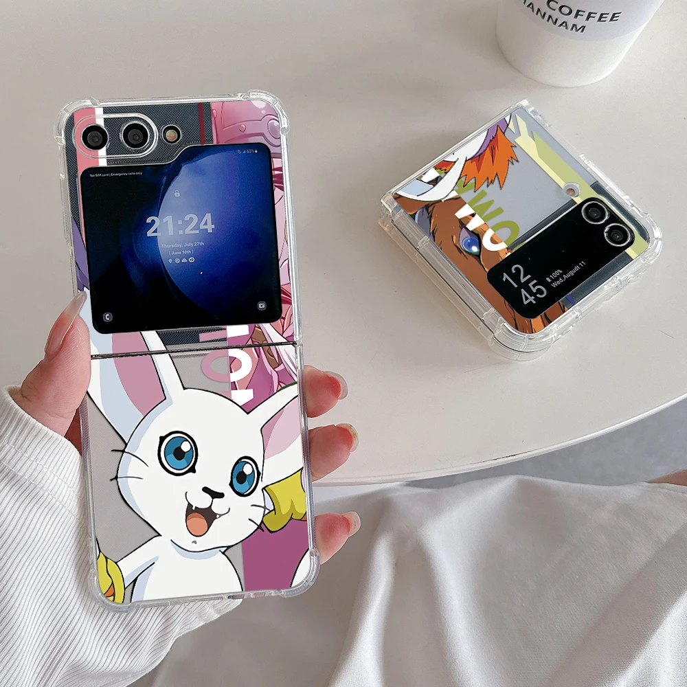 Comprar Funda de teléfono Anime Digimon Adventure para Samsung Galaxy Z Flip 6 5 ZFlip 4 3 Fold4 5G, funda protectora suave anticaída para lente de cámara