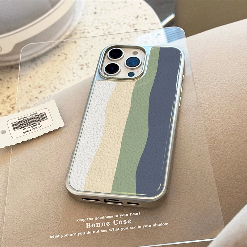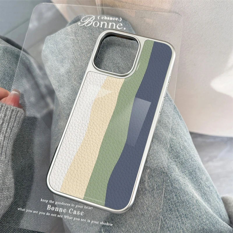 Funda de teléfono anticaída de TPU con textura de cuero con patrones de ondas multicolores para iPhone XR/11/12/13/14/15/16/17 Pro Max