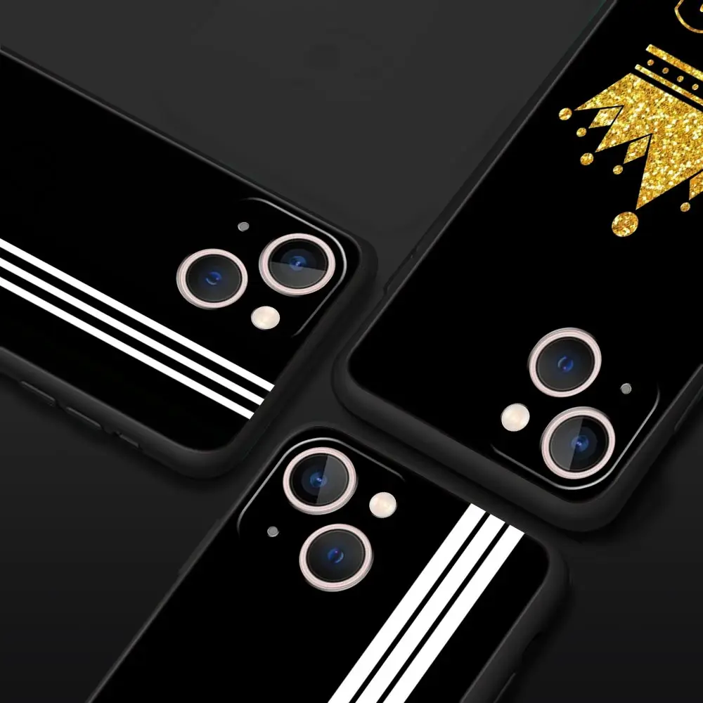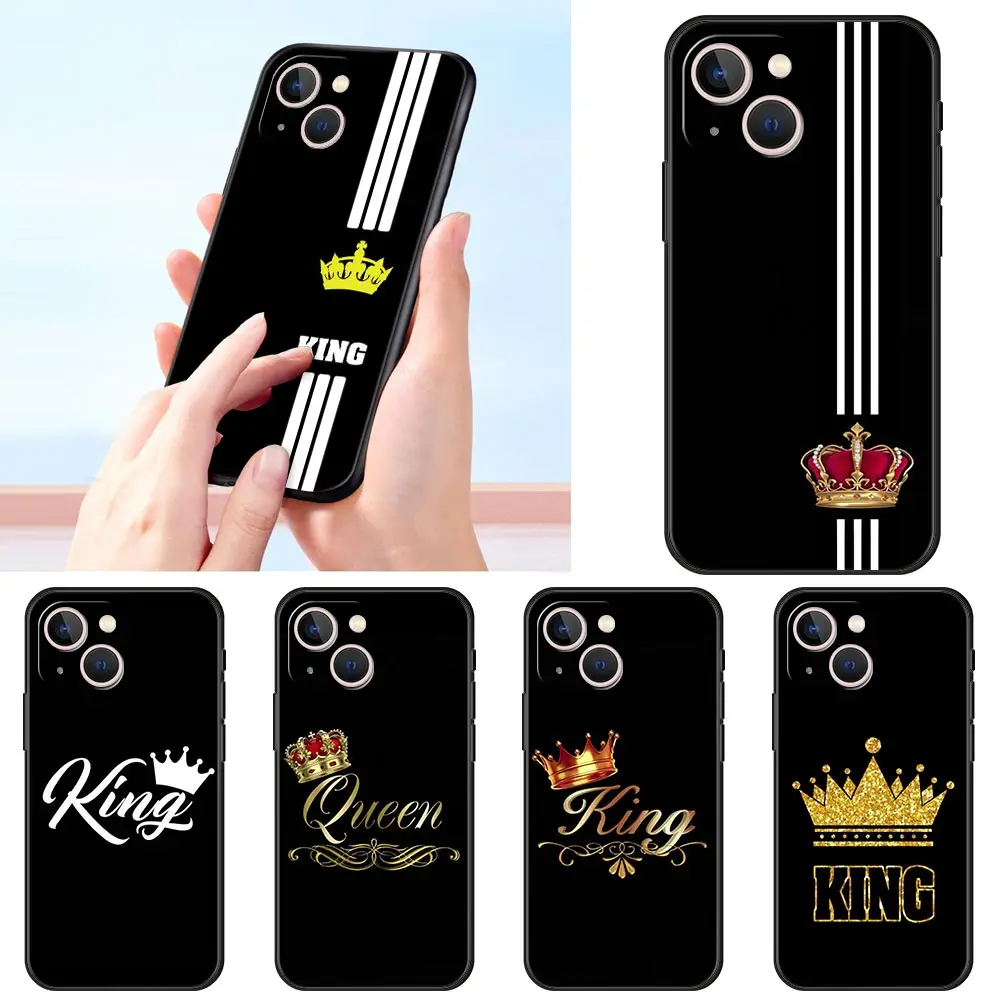 Funda de teléfono para Apple iPhone 11, 15, 14 Pro MAX, 12, 13, 7, 8 Plus, X, XR, XS, MAX, SE, estilo de pareja, dibujos animados, corona, rey, reina - imagen 1