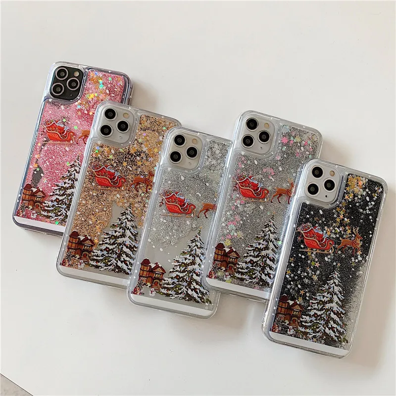 Funda de teléfono de Feliz Navidad para iPhone 14 13 12 11 Pro Max XS X XR 7 8 Plus Mini SE parachoques líquido arenas movedizas brillo cubierta de silicona a prueba de golpes