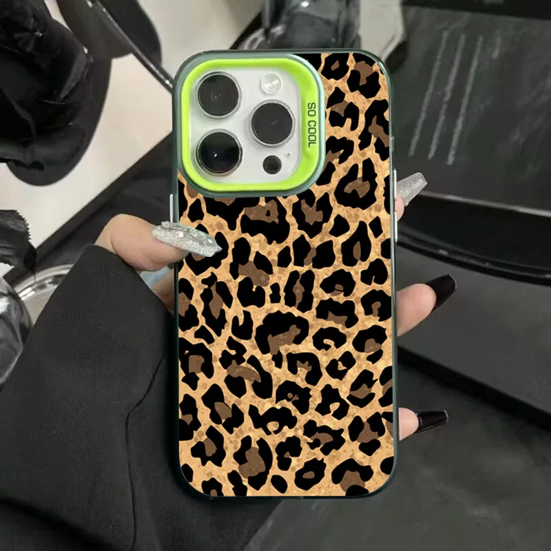 Funda de teléfono armadura anticaída de leopardo marrón para iPhone 15 Pro Max 16 14 13 12 11 Pro X XR XS 7 Plus 16E cubierta protectora de revestimiento de lente