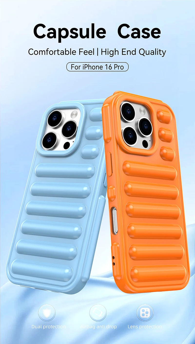 Funda de teléfono con armadura de cápsula de cojín de aire para iPhone 16E 16 15 14 Plus 11 12 13 Pro Max X XS XR, funda suave de TPU de Color sólido a prueba de golpes