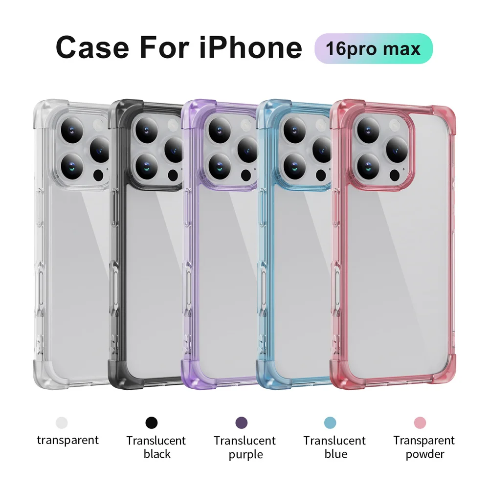 Funda de teléfono con armadura de esquinas esmeriladas transparentes para iPhone 16 15 14 Plus 13 12 11 Pro Max X R XS 7 8 SE, funda protectora de marco de Color sólido