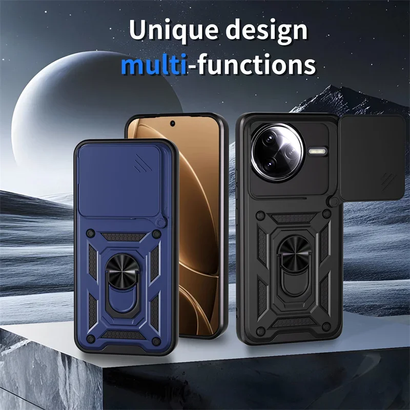 Funda de teléfono Armor a prueba de golpes para POCO F7 Ultra, funda deslizante para cámara, soporte de anillo, funda de plástico para Xiaomi POCO F7 Pro