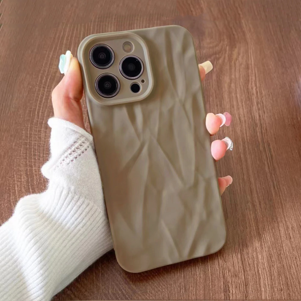 Funda de teléfono arrugada plegable de silicona de lujo para iPhone 15 Plus 13 12 11 14 Pro Max X XR XS MAX 8 7 SE cubierta completa de Color caramelo suave
