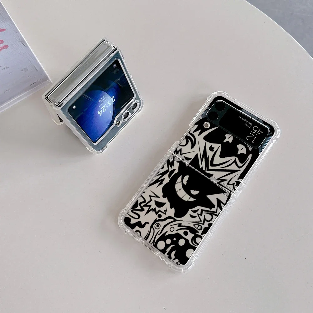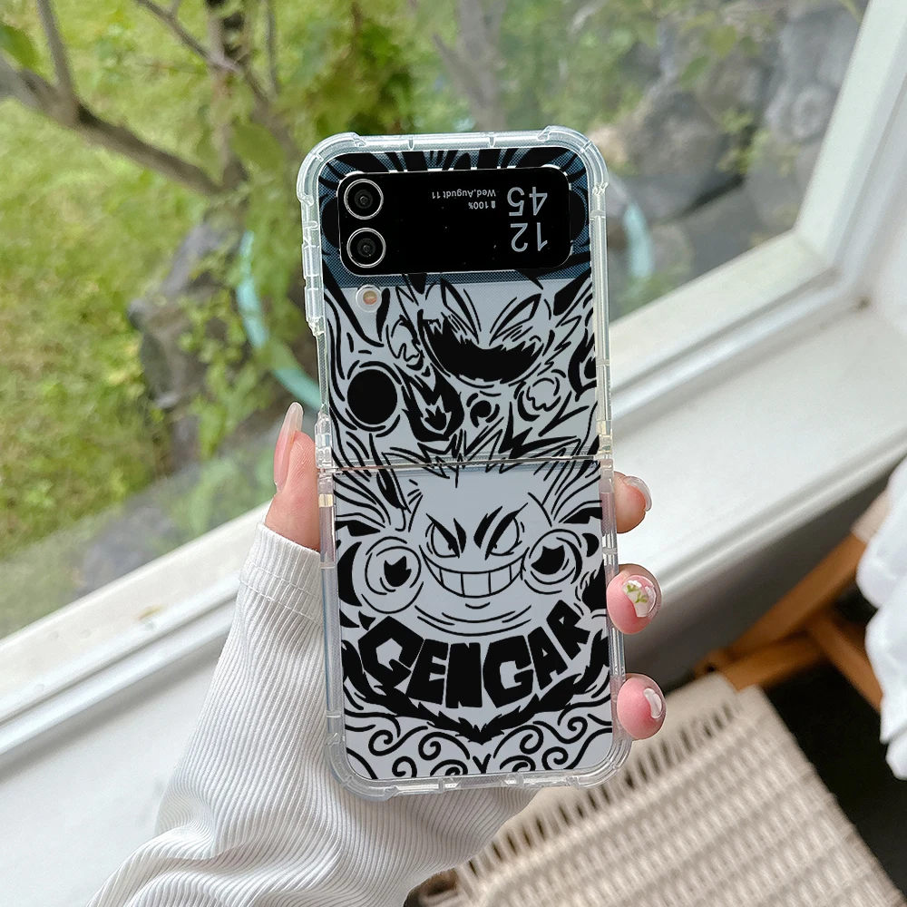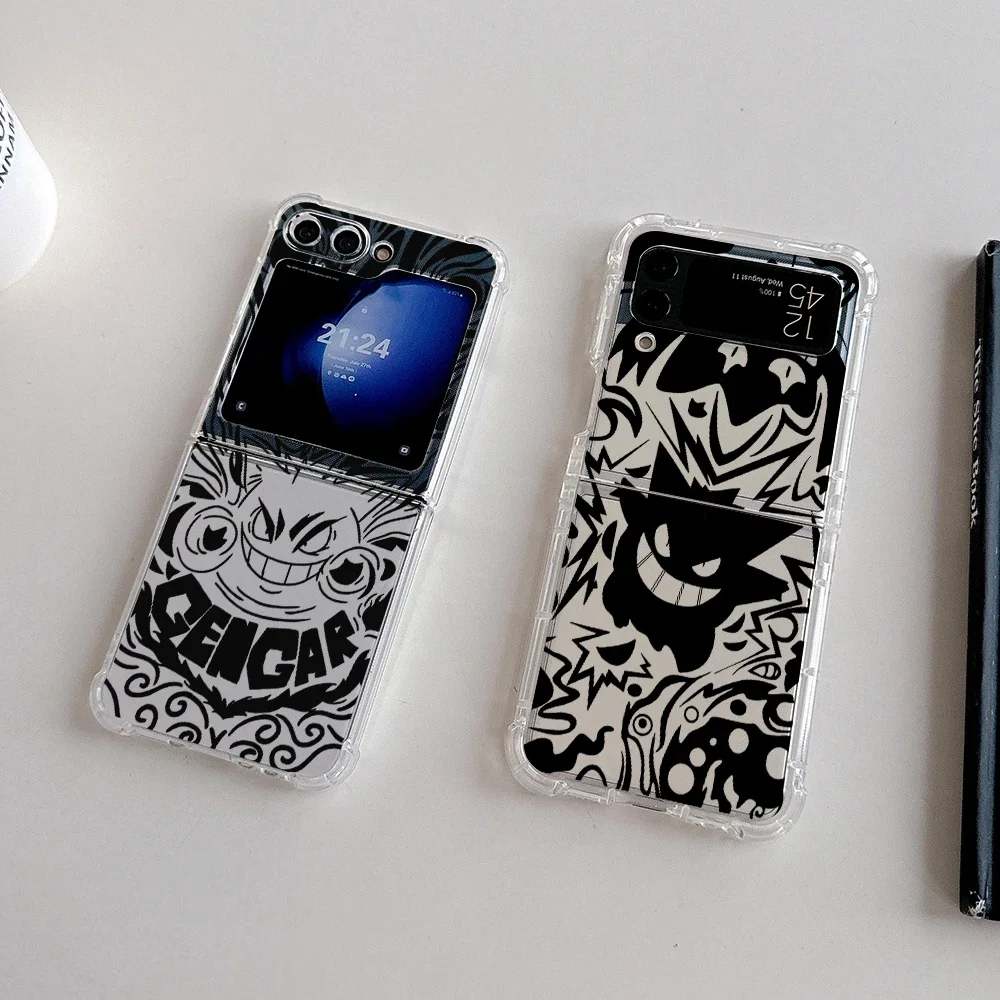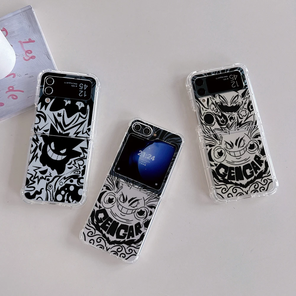 Funda de teléfono de Arte de dibujos animados negro Gengars mewtws para Samsung Galaxy Z Flip 3 4 Z Flip 5 Z Fold 4 5G PC, cubierta trasera suave anticaída