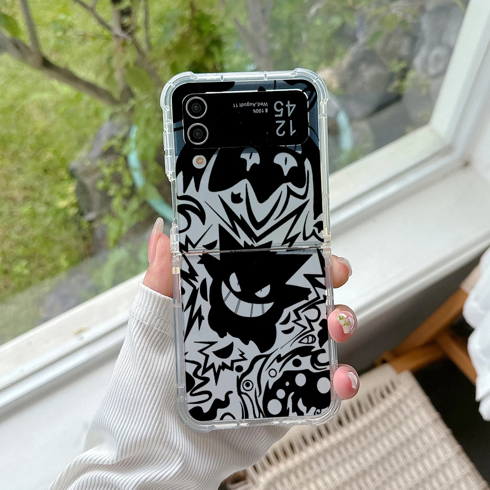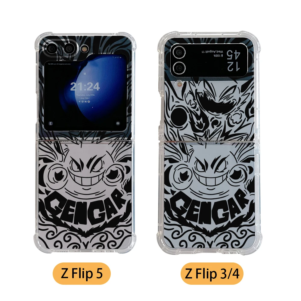 Comprar Funda de teléfono de Arte de dibujos animados negro Gengars mewtws para Samsung Galaxy Z Flip 3 4 Z Flip 5 Z Fold 4 5G PC, cubierta trasera suave anticaída