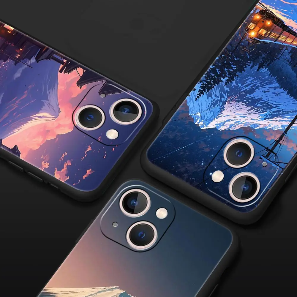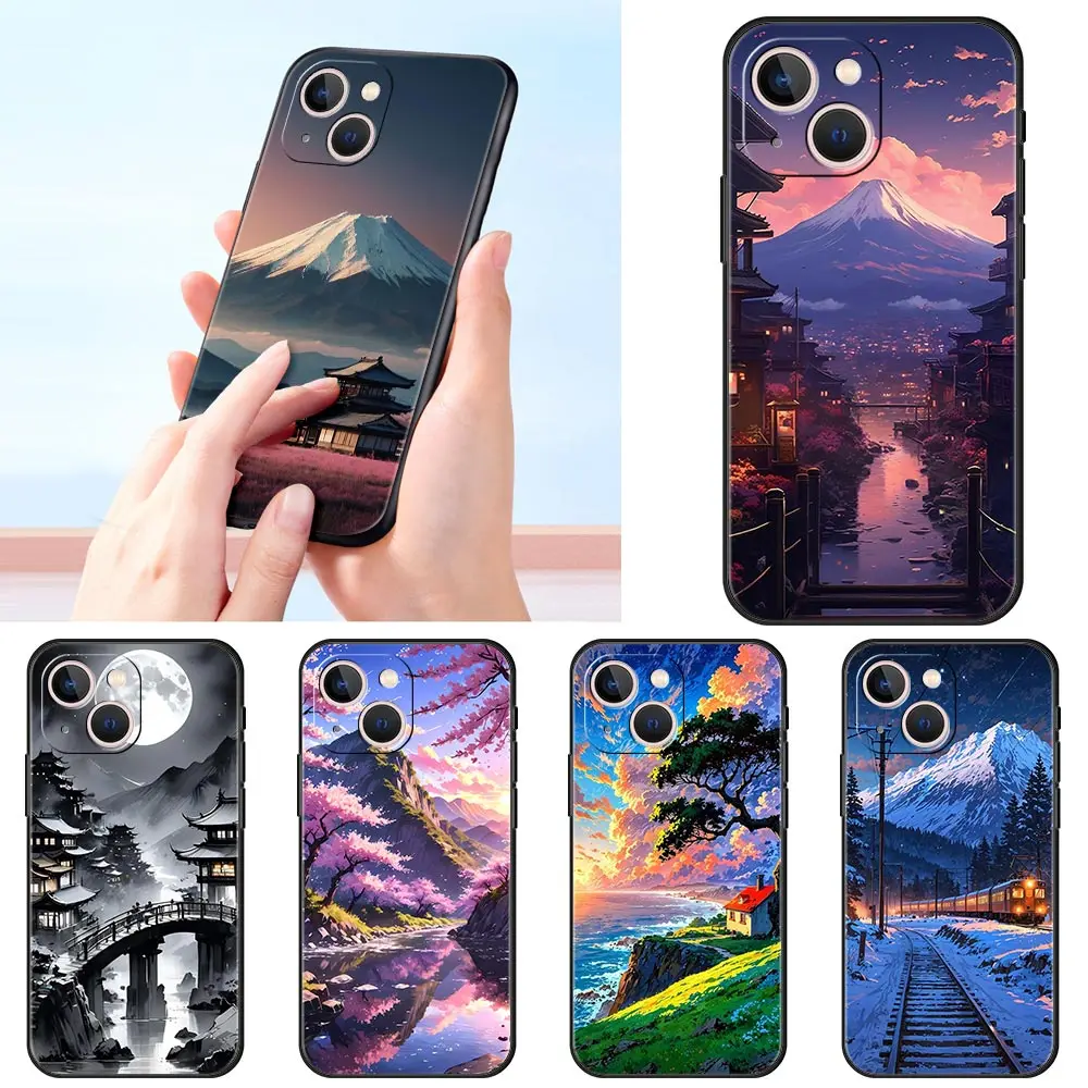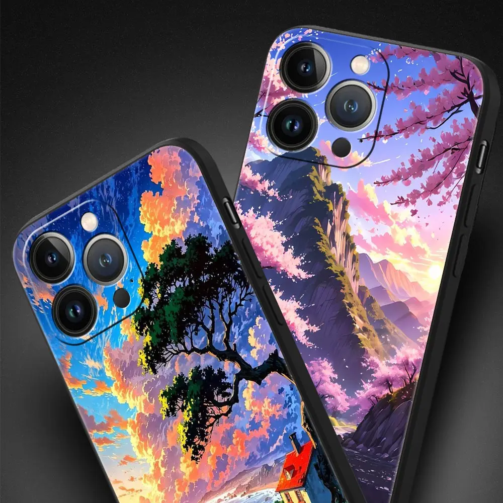 Comprar Funda de teléfono con arte paisajístico de Anime japonés para iPhone 16 13 15 14 12 11 Pro MAX XR X SE XS 7 8 Plus, funda suave de TPU