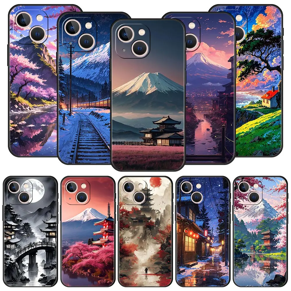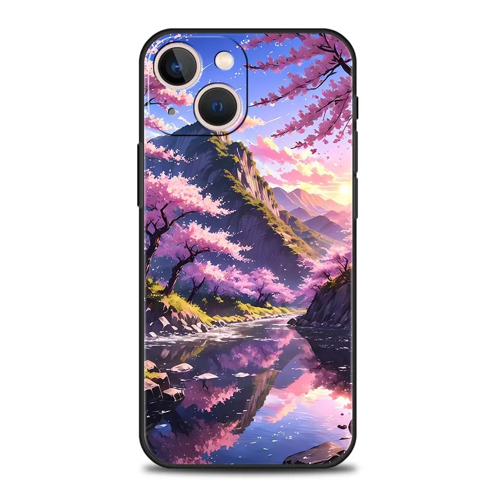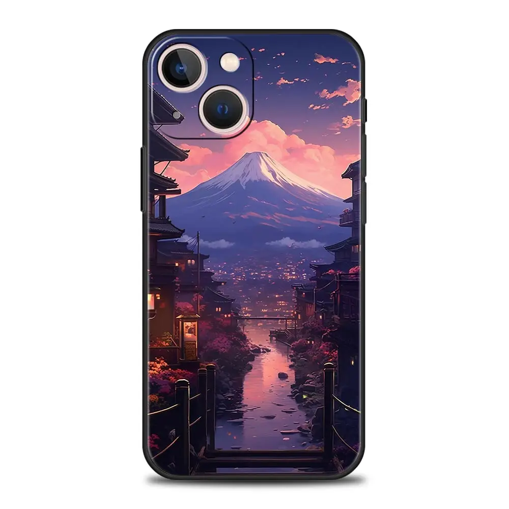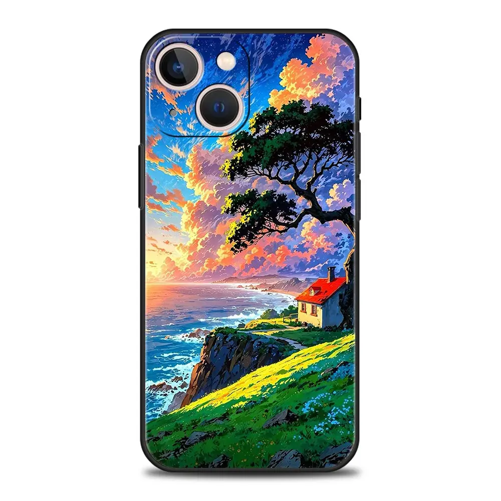 Comprar Funda de teléfono con arte paisajístico de Anime japonés para iPhone 16 13 15 14 12 11 Pro MAX XR X SE XS 7 8 Plus, funda suave de TPU