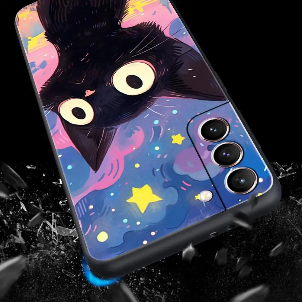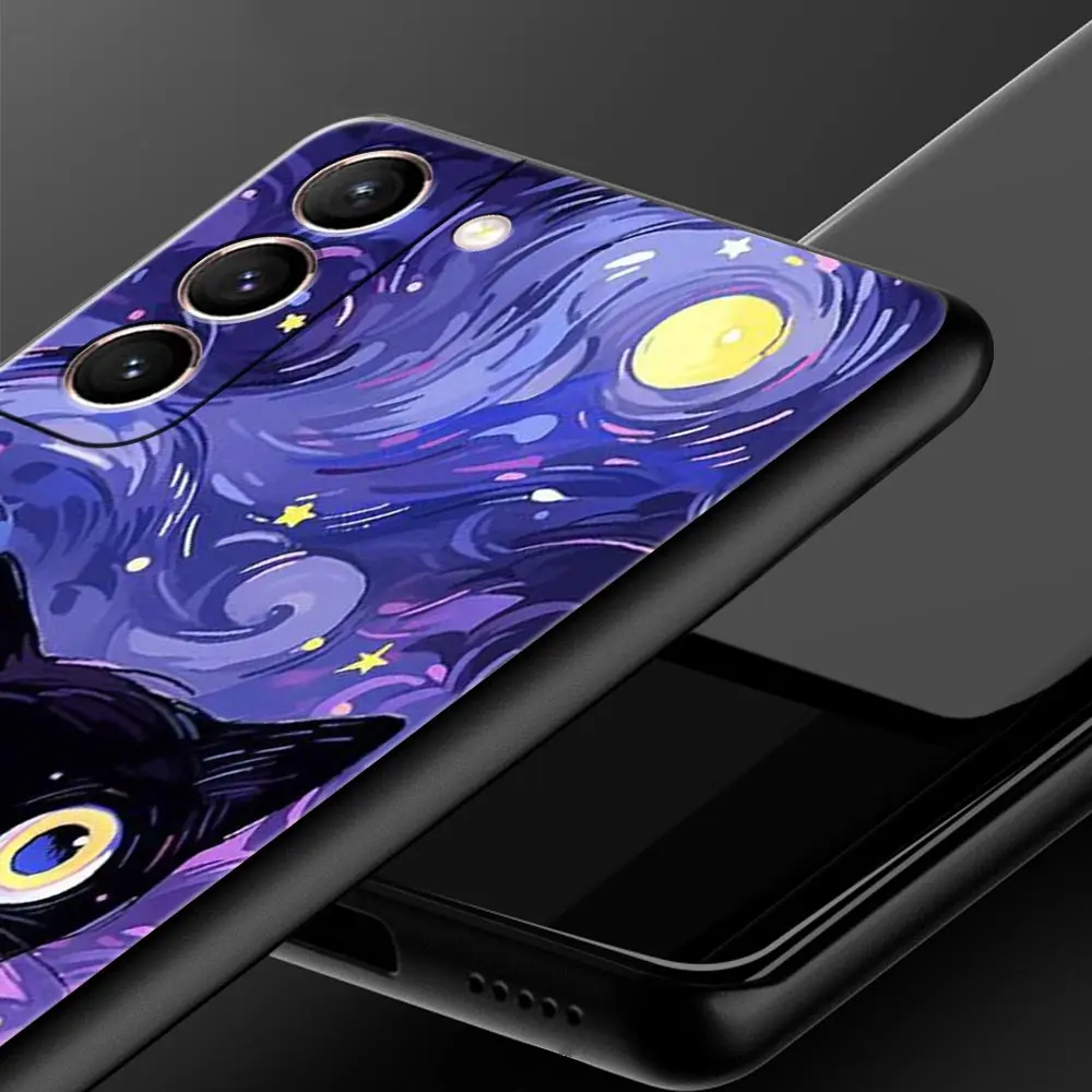 Comprar Funda de teléfono artística de gato negro con noche estrellada para Samsung Galaxy S24 S23 S22 Ultra S20 S21 FE 5G S10 S9 Plus S10E S8 S7 Edge