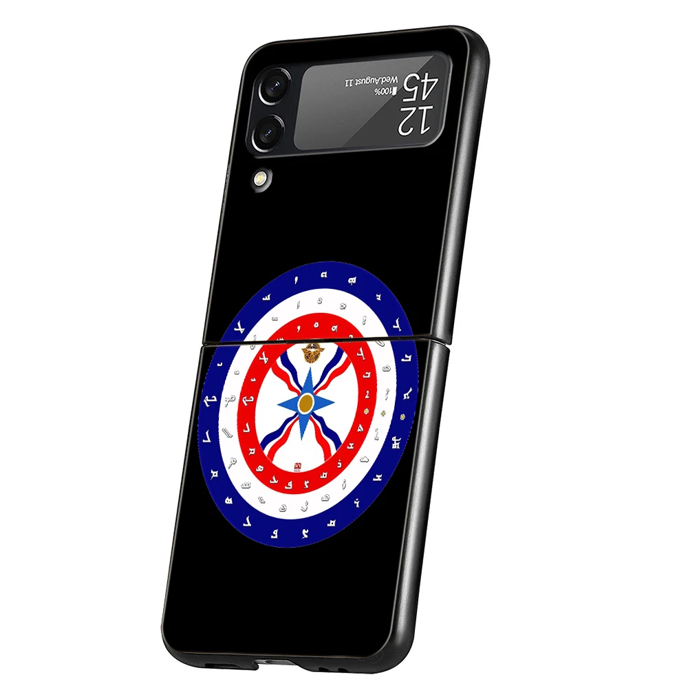 Funda de teléfono asyrian con bandera de Asiria para Samsung Galaxy Z Flip 3 4 5 6 7, PC plegable negro duro para Samsung Z Flip3 Flip4 Flip5