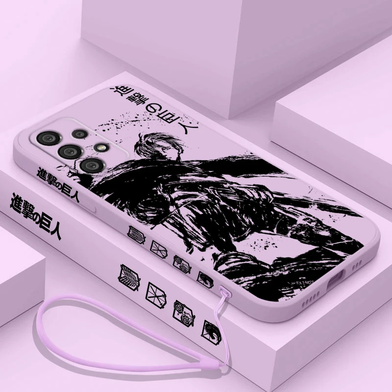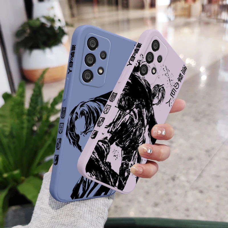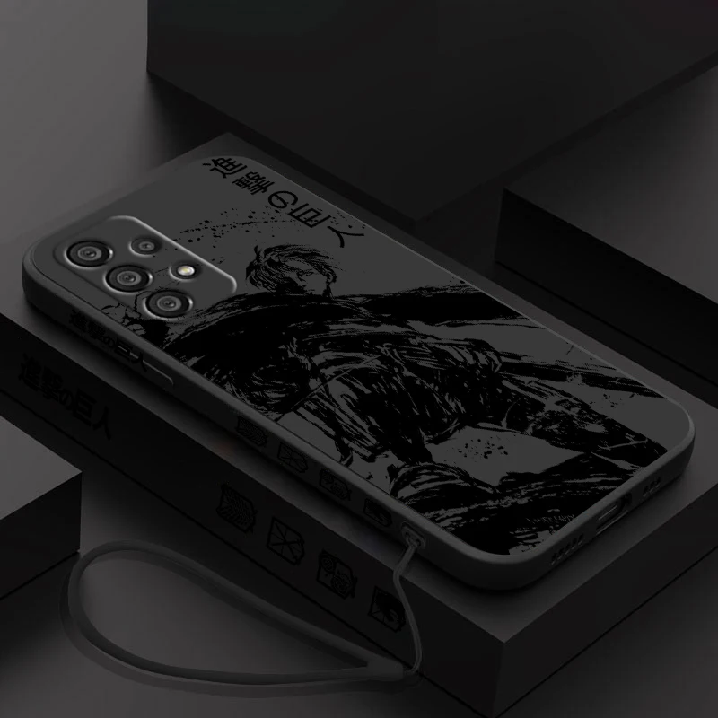 Funda de teléfono Attack On Titan Levi Ackerman para Samsung A55 A53 A33 A52 A32 A71 A51 A21S A35 A25 5G Funda de cuerda izquierda líquida