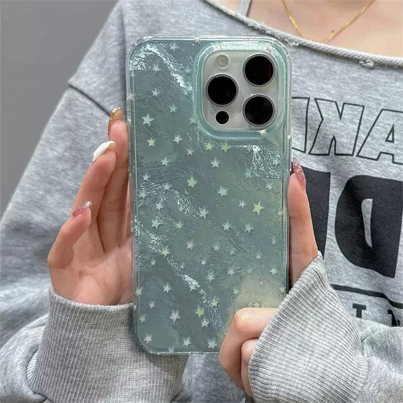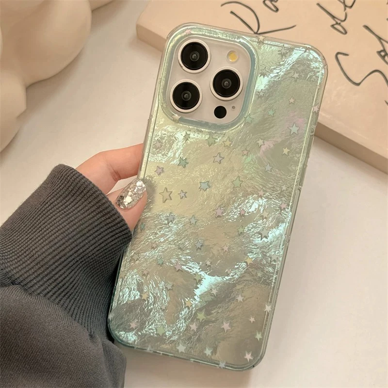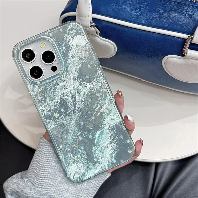 Funda de teléfono Aurora con estrellas degradadas para iPhone 16 15 14 13 12 11 Mini Pro Max X XR XSMax 7 8 Plus, funda suave con patrón de glaciar