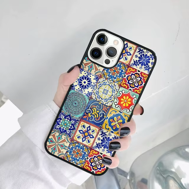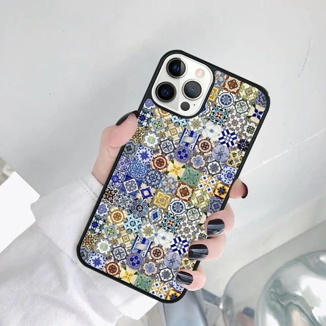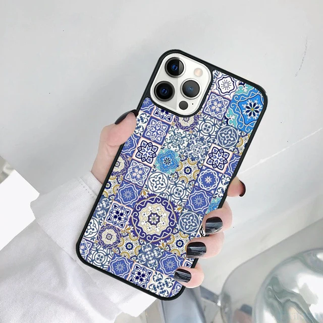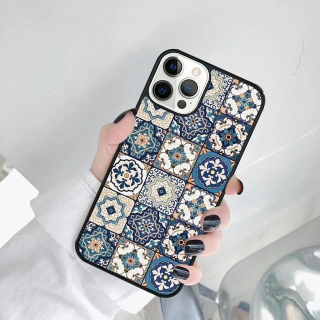 Funda de teléfono con azulejo marroquí decorativo artístico para iPhone 17 Air 15 Pro MAX 16 Plus 14 11 12 13