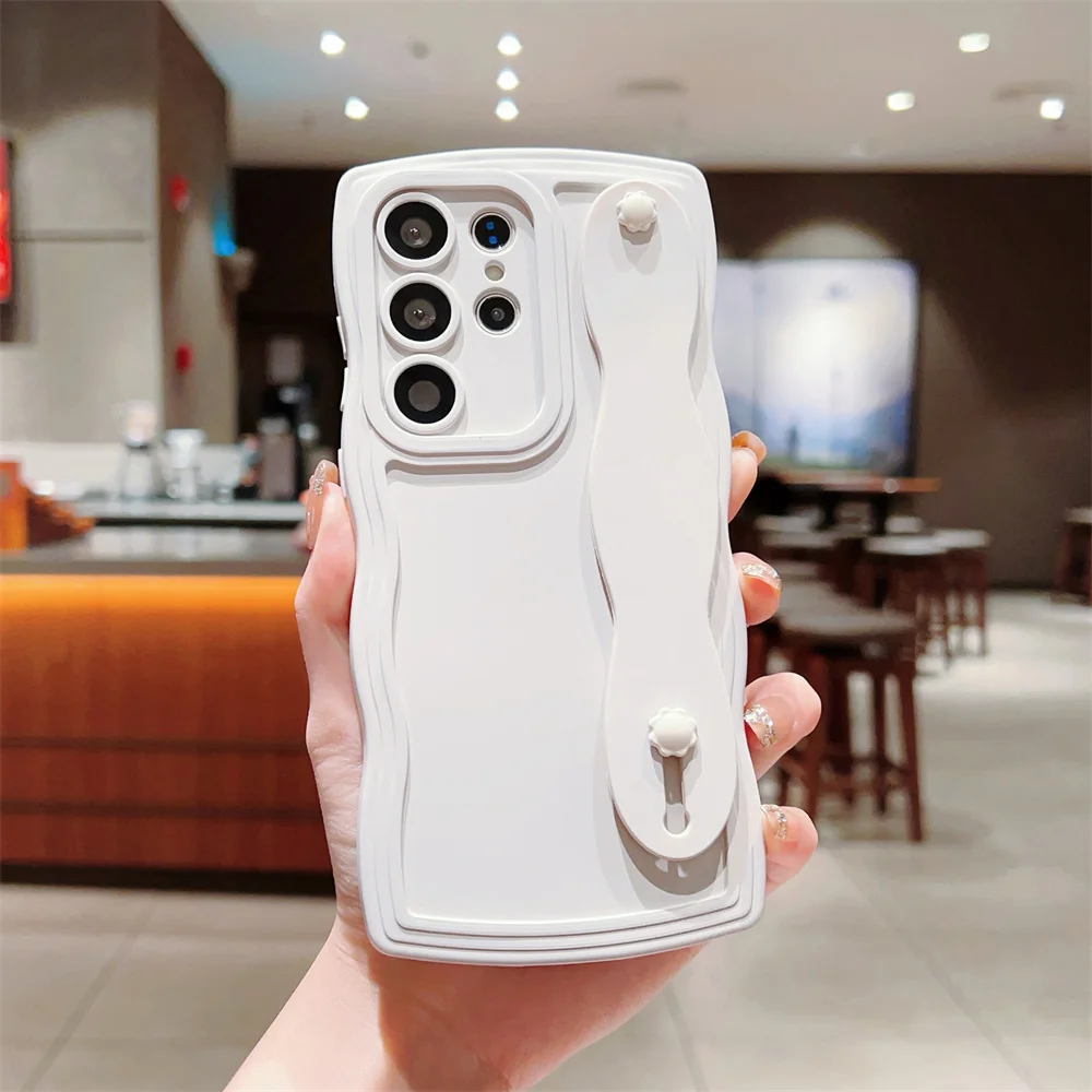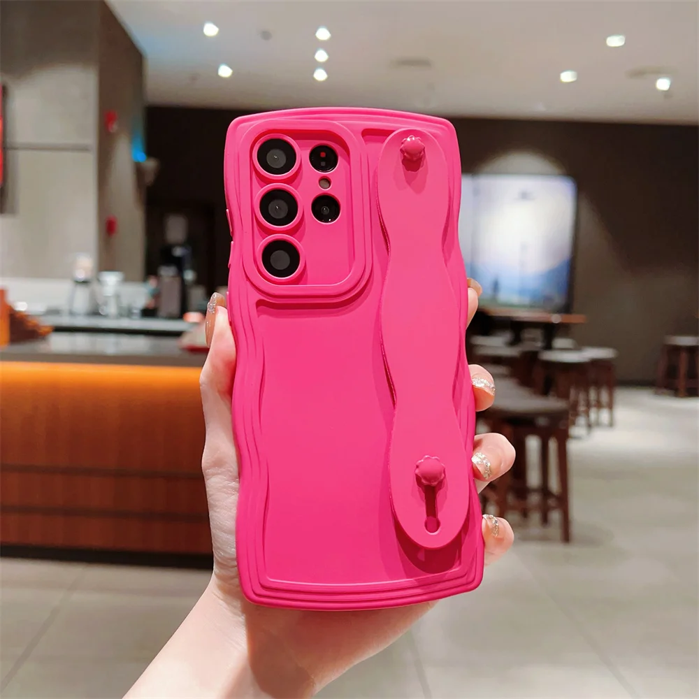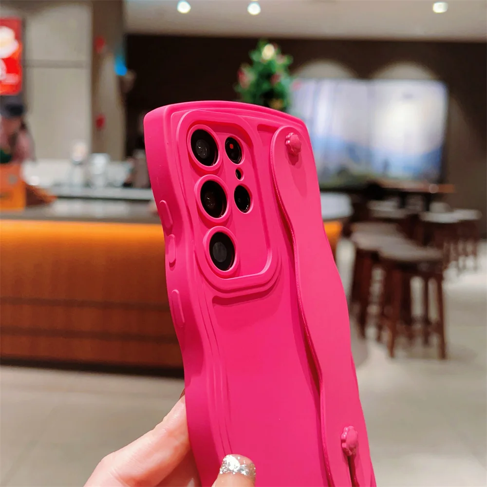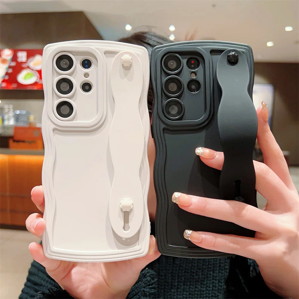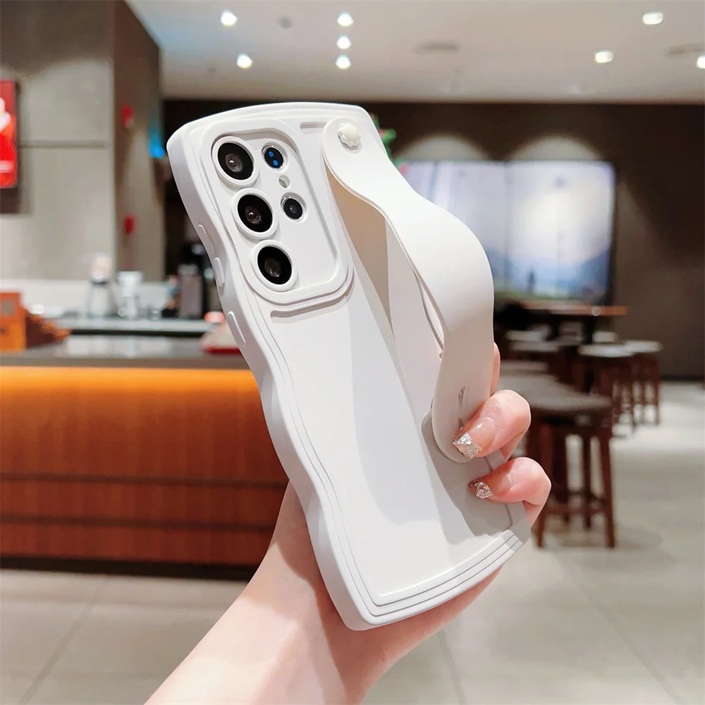 Comprar Funda de teléfono con banda de muñeca ondulada rizada para Samsung S24, S23, S22 Ultra, S21 Plus, S20 FE, A54, A34, 5G, A14, A24, A15, A53, A52, A33, A23, cubierta suave