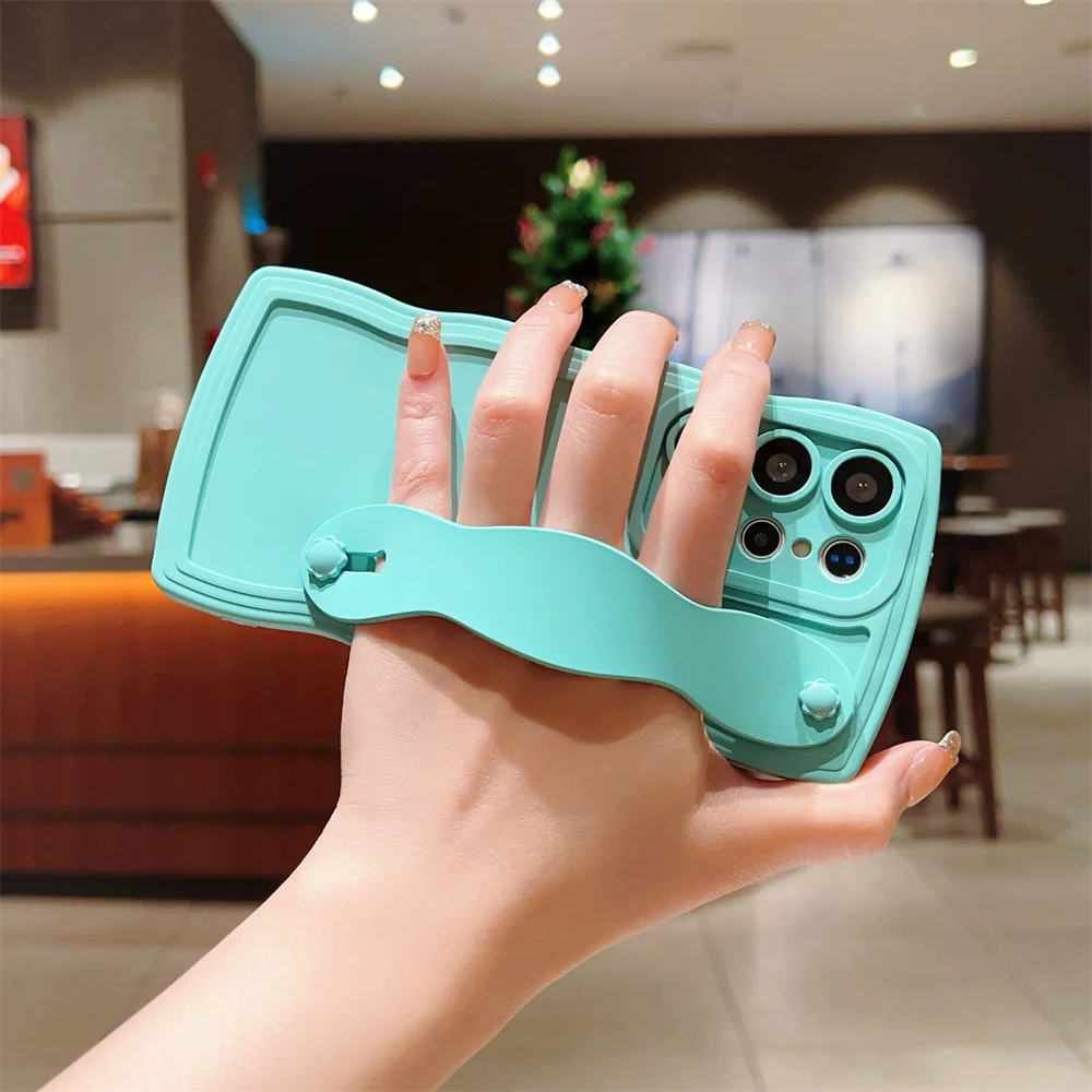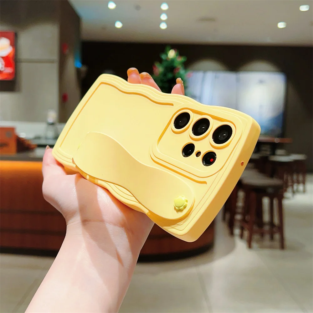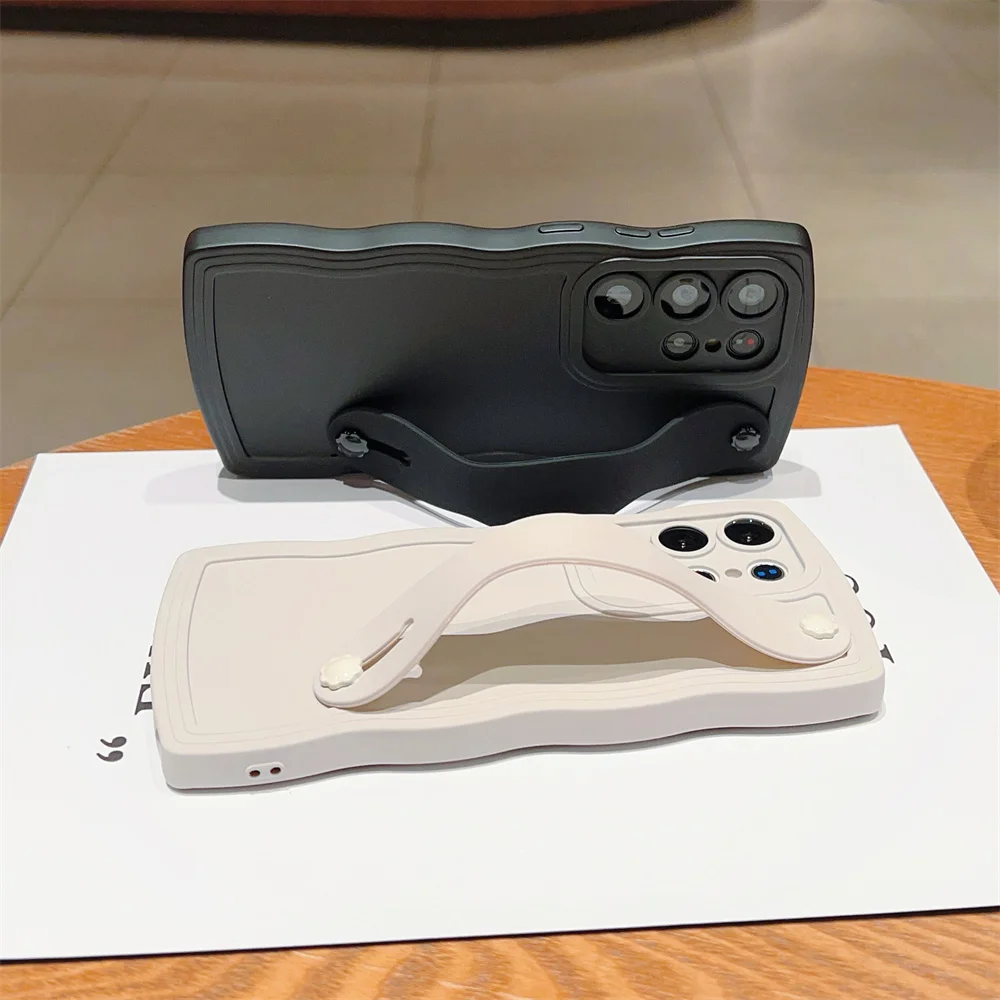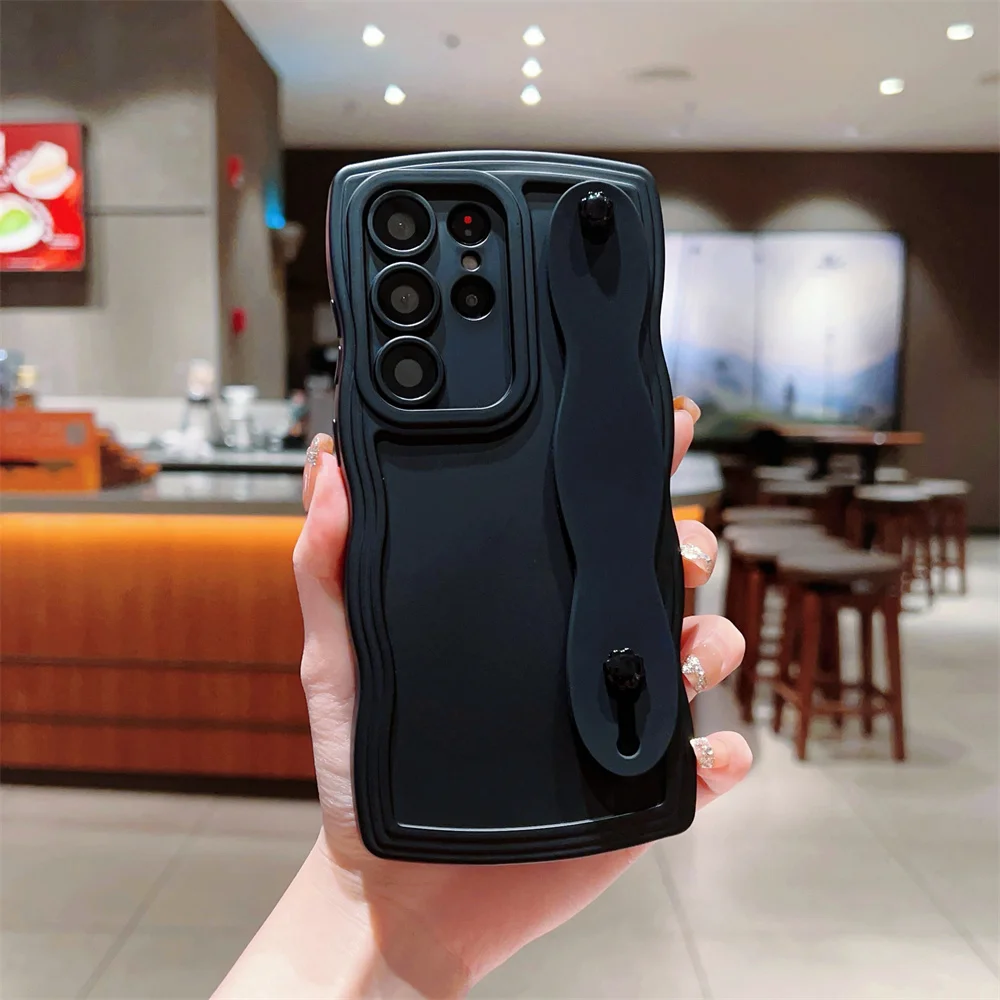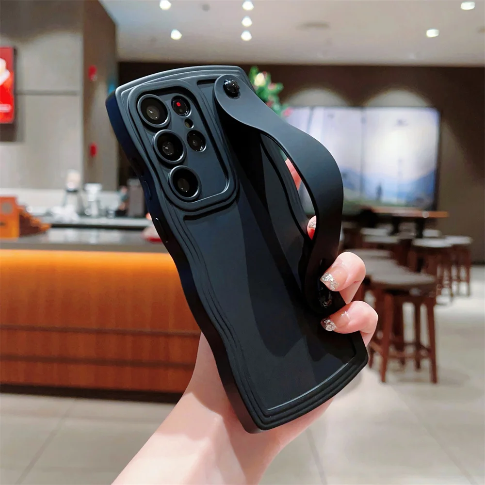 Comprar Funda de teléfono con banda de muñeca ondulada rizada para Samsung S24, S23, S22 Ultra, S21 Plus, S20 FE, A54, A34, 5G, A14, A24, A15, A53, A52, A33, A23, cubierta suave