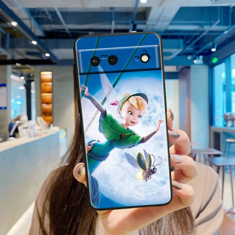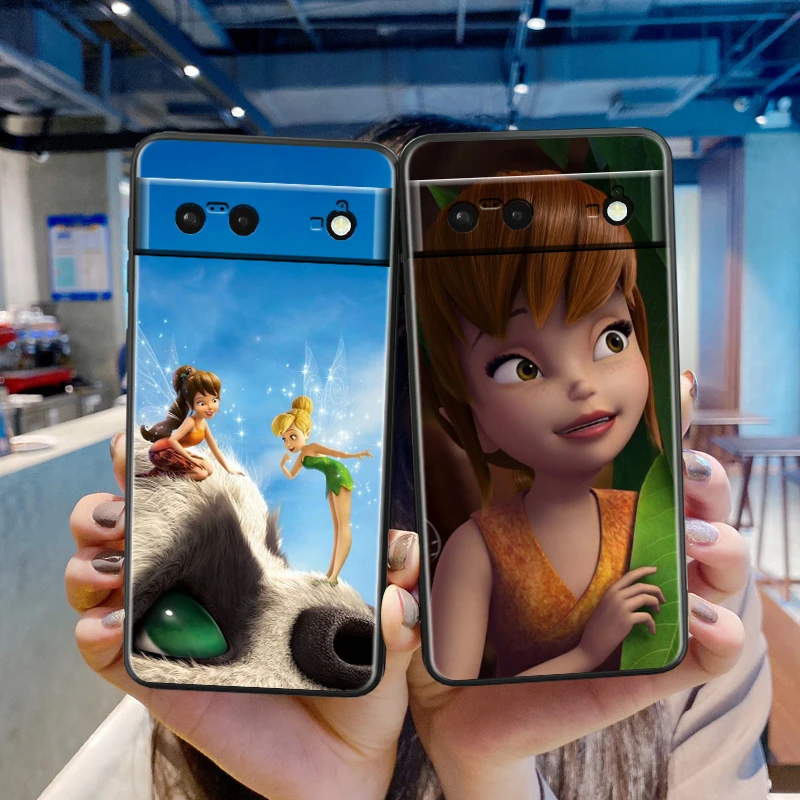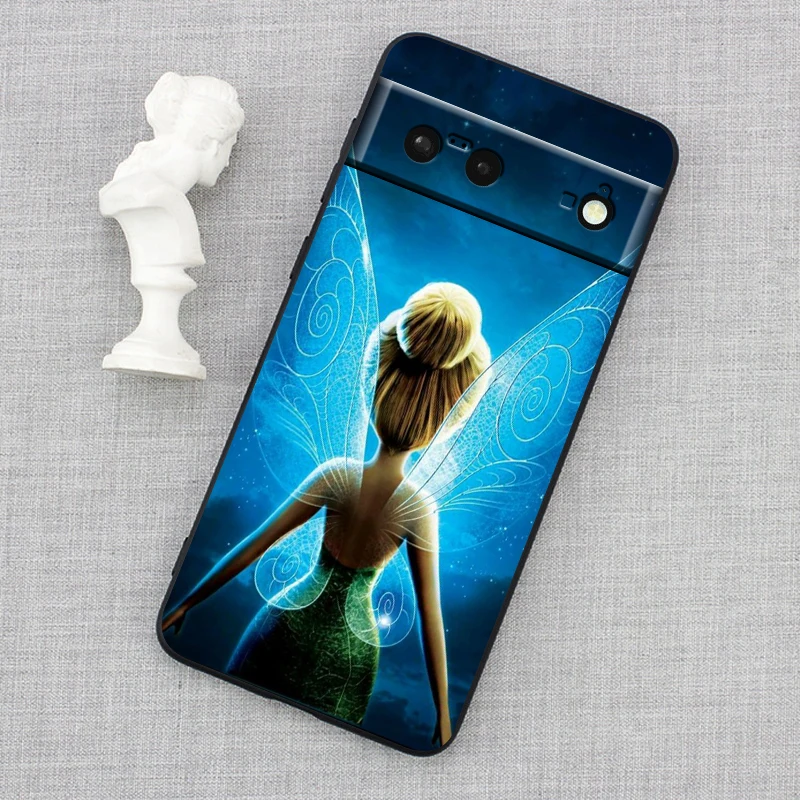Funda de teléfono blanda de silicona negra a prueba de golpes, carcasa Tinker Bell, diseño de Disney para Google Pixel 9, 8, 7A, 7, 6A, 6, 5A, 5, 4, 4A, XL, 5G