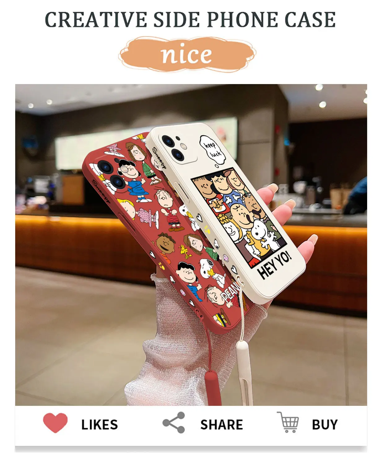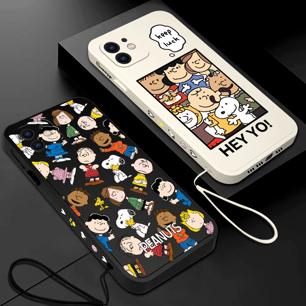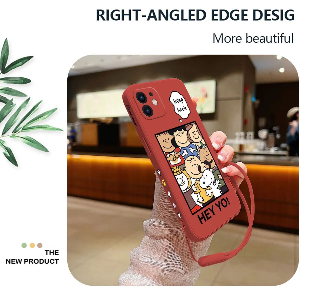Comprar Funda de teléfono bonita de Anime Snoopys para iPhone 16 15 14 13 12 11 Pro Max Mini X XR XSMAX 8 7 Plus, funda de silicona suave con correa de mano