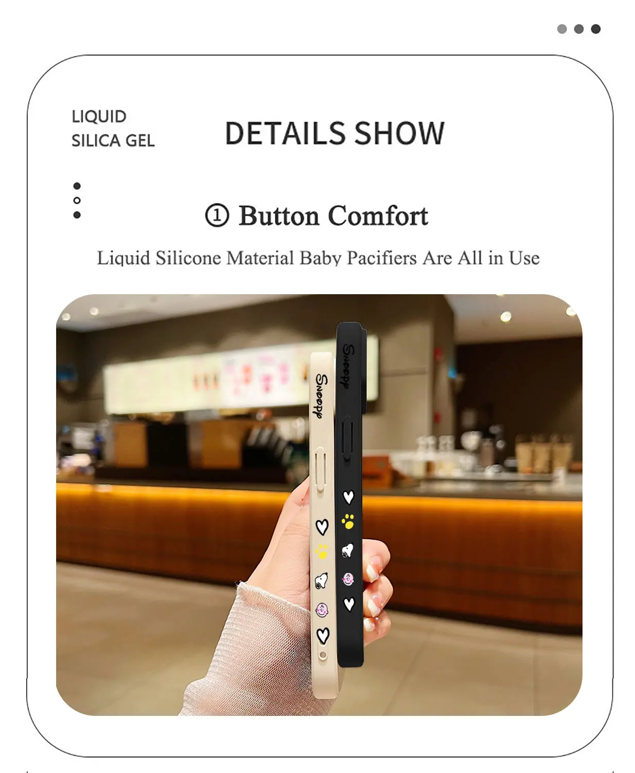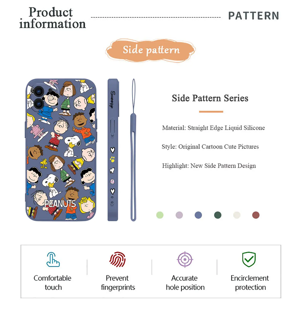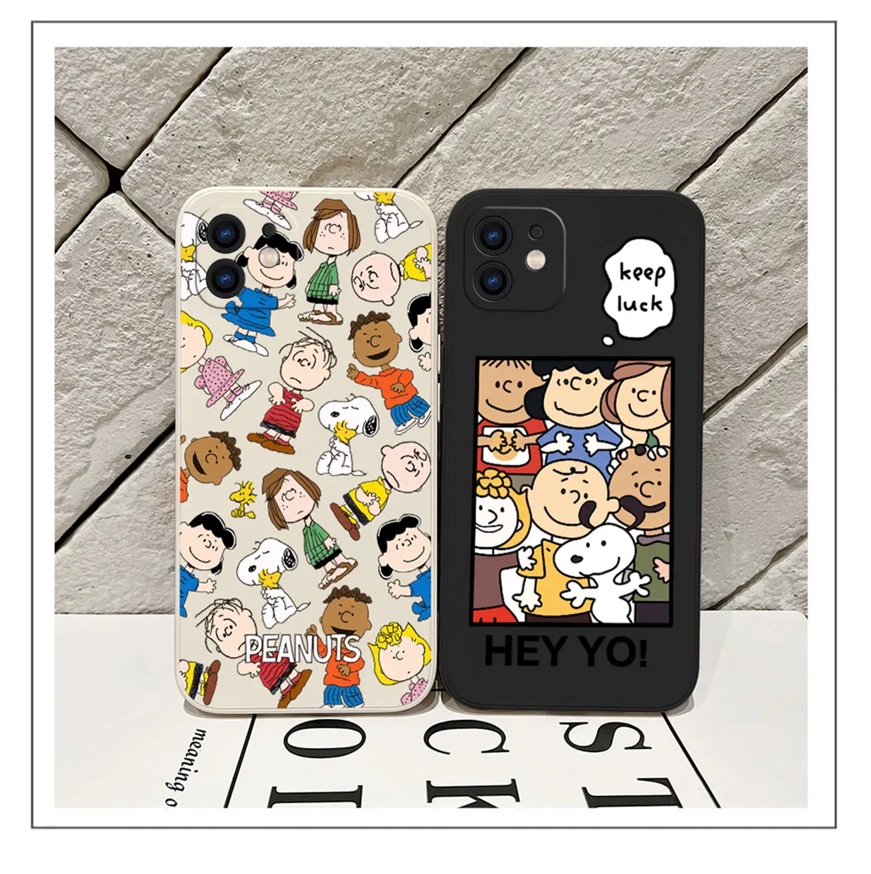 Comprar Funda de teléfono bonita de Anime Snoopys para iPhone 16 15 14 13 12 11 Pro Max Mini X XR XSMAX 8 7 Plus, funda de silicona suave con correa de mano
