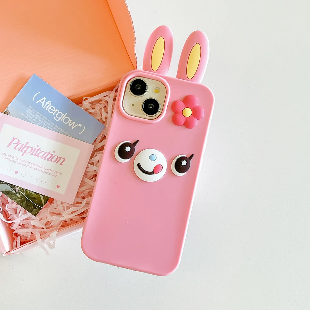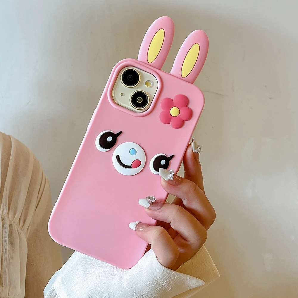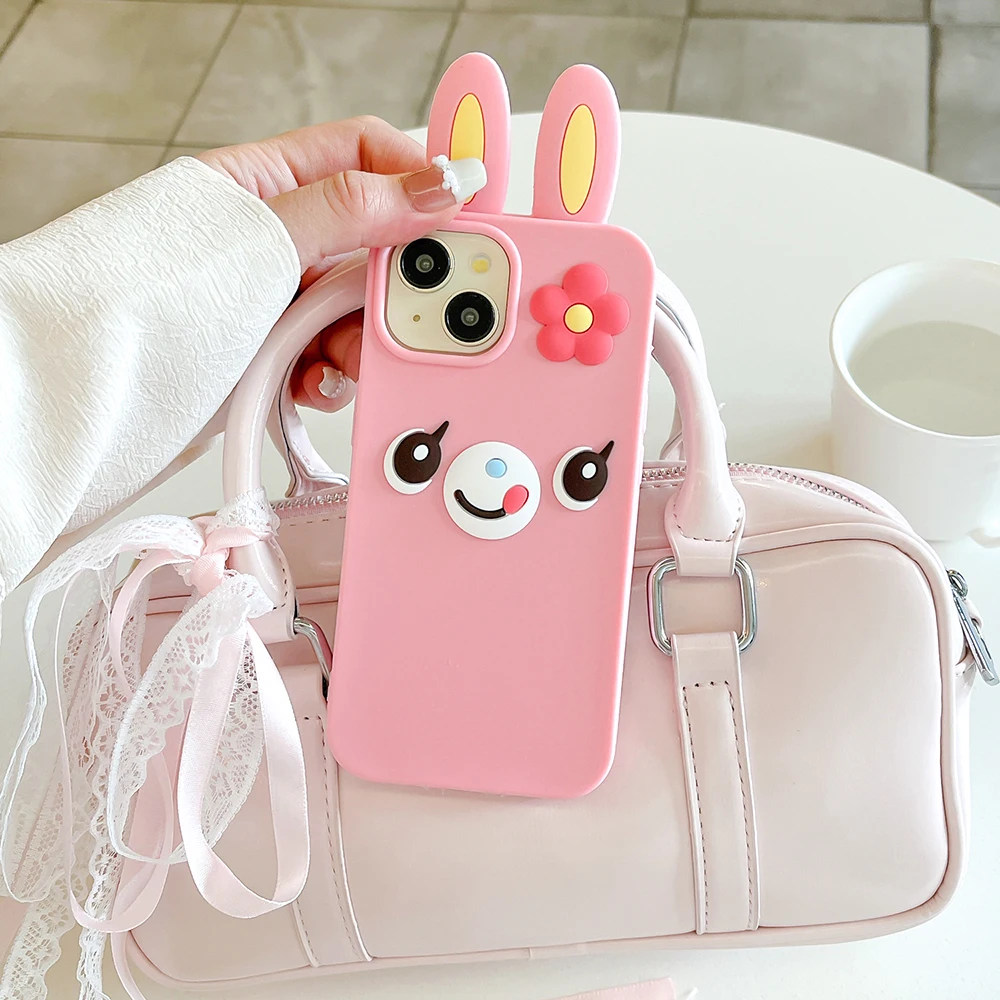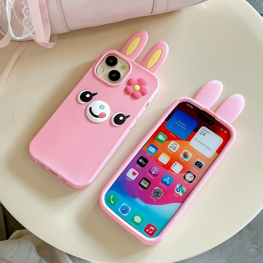 Funda de teléfono bonita con diseño de conejo de dibujos animados en 3D para iPhone 12 15 14 13 16 Pro Max Plus funda suave a prueba de golpes para Iphone 16pro 15pro 14pro 11