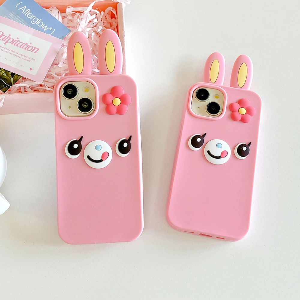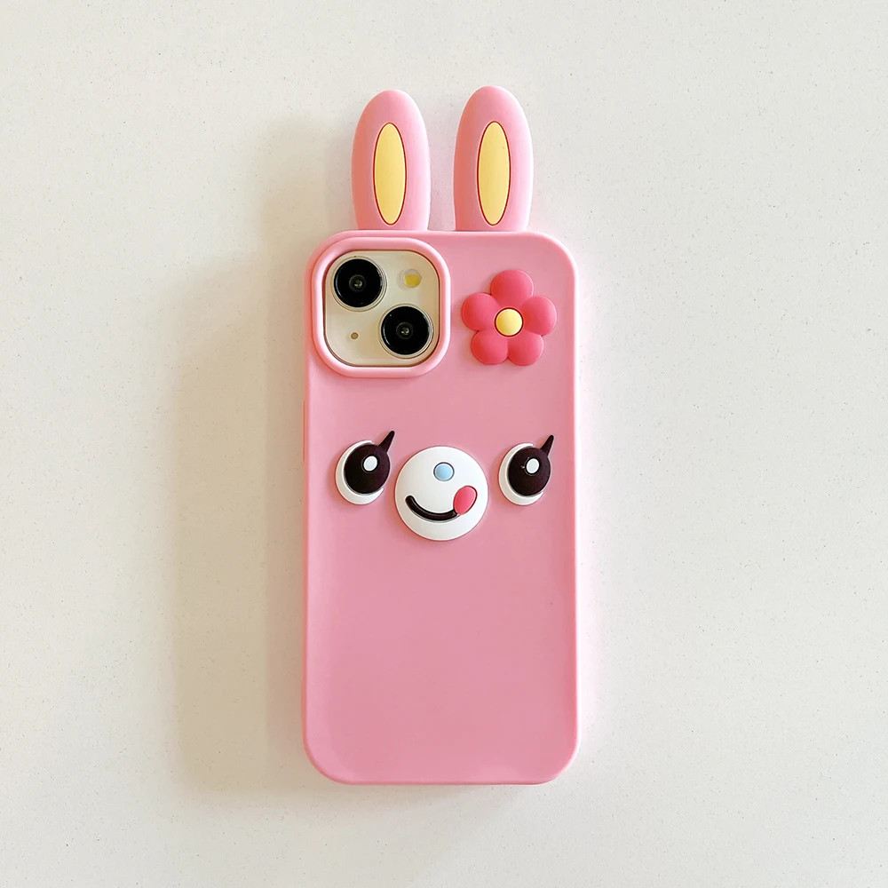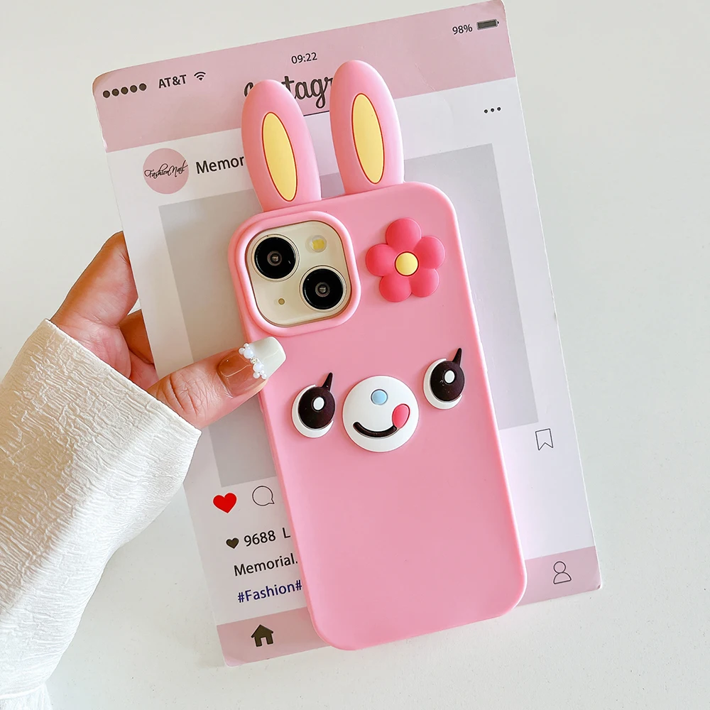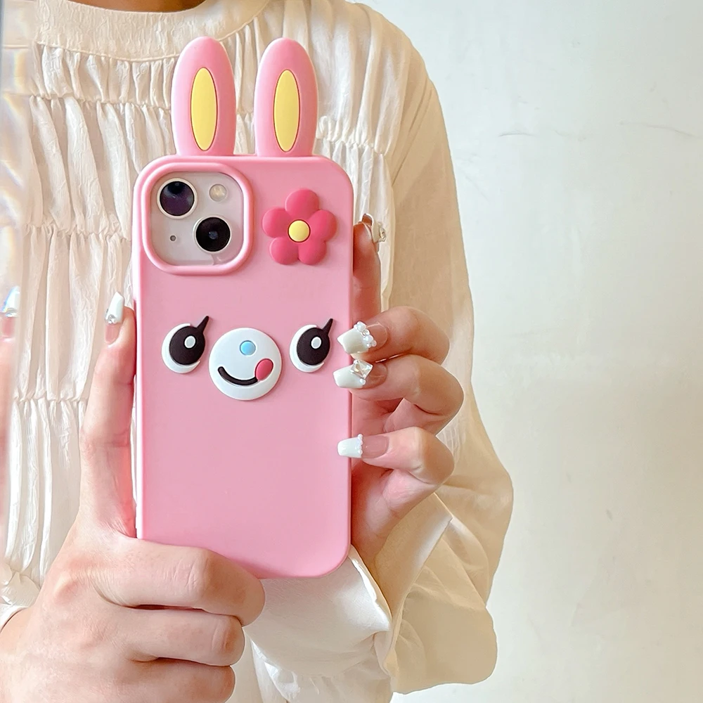 Funda de teléfono bonita con diseño de conejo de dibujos animados en 3D para iPhone 12 15 14 13 16 Pro Max Plus funda suave a prueba de golpes para Iphone 16pro 15pro 14pro 11