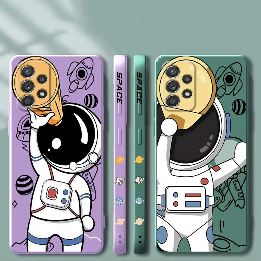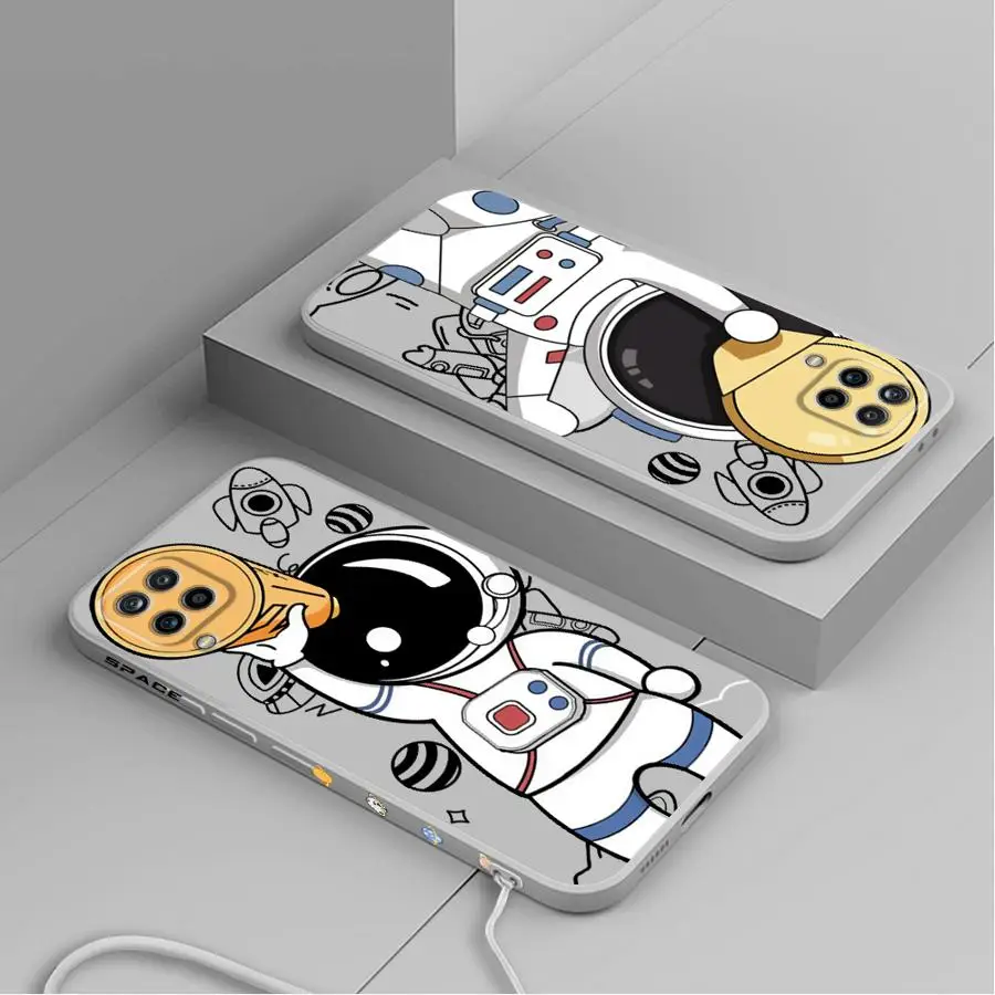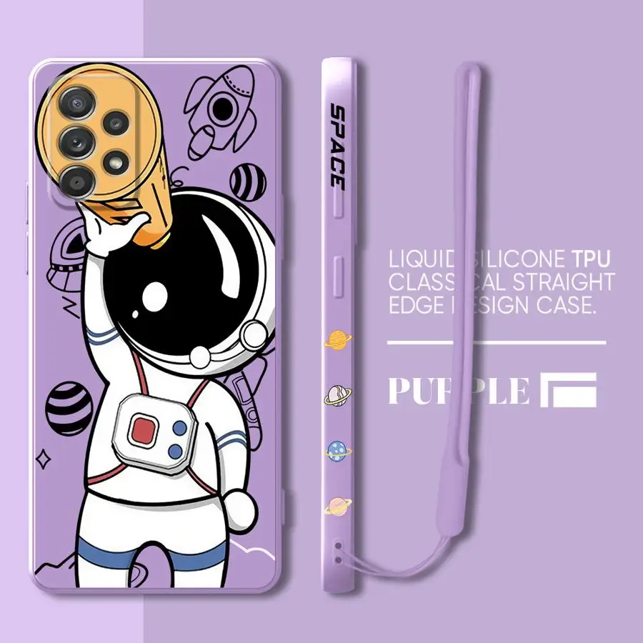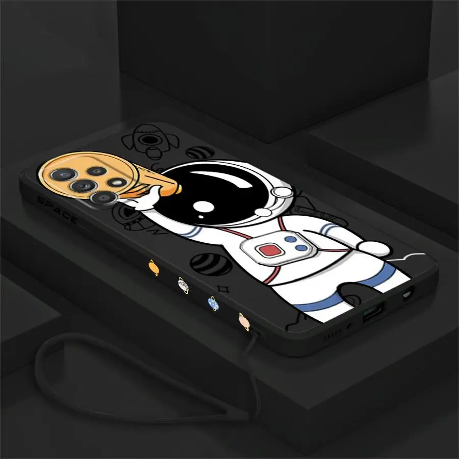 Comprar Funda de teléfono bonita con cordón de mano de astronauta para Samsung Galaxy A73 A71 A51 A31 A05s A04 A72 A03s A02 A70 A30s A20 A10 funda suave