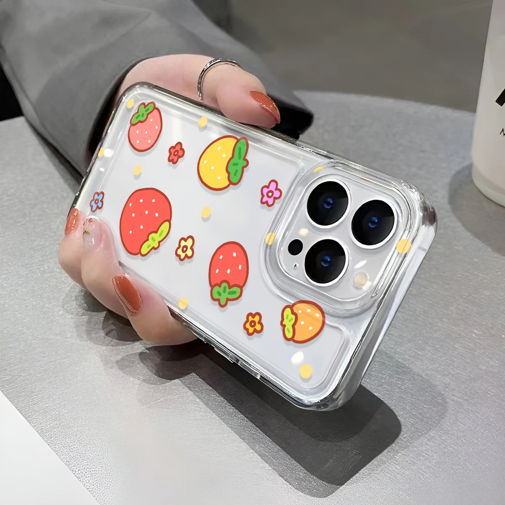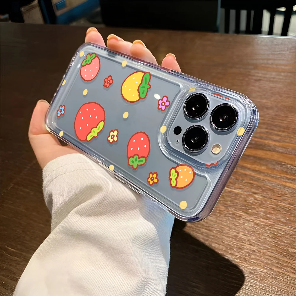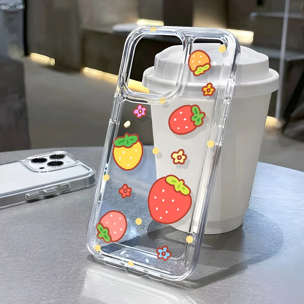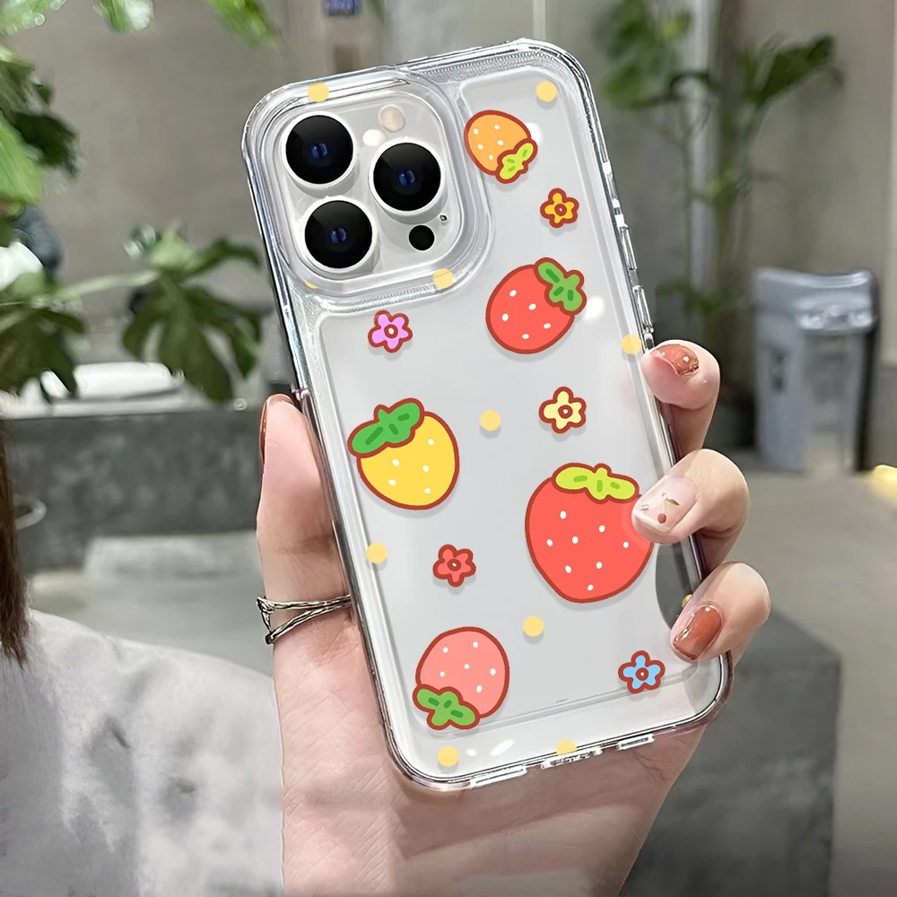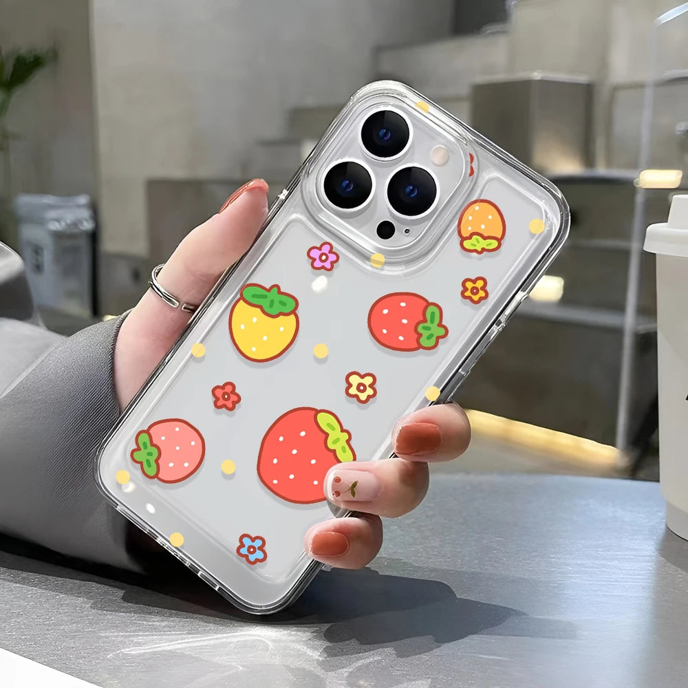 Comprar Funda de teléfono bonita de fresa para iPhone 16 15 14 13 Pro Max 11 12 13 Pro 16E SE2022 funda de lujo a prueba de golpes