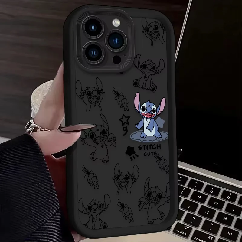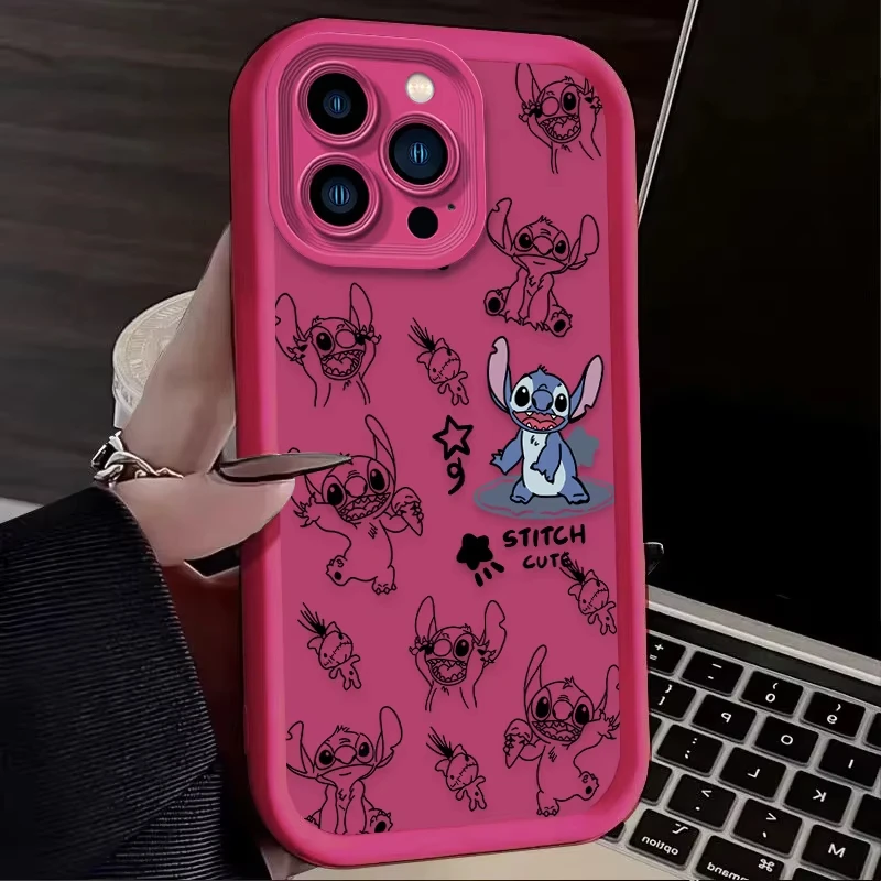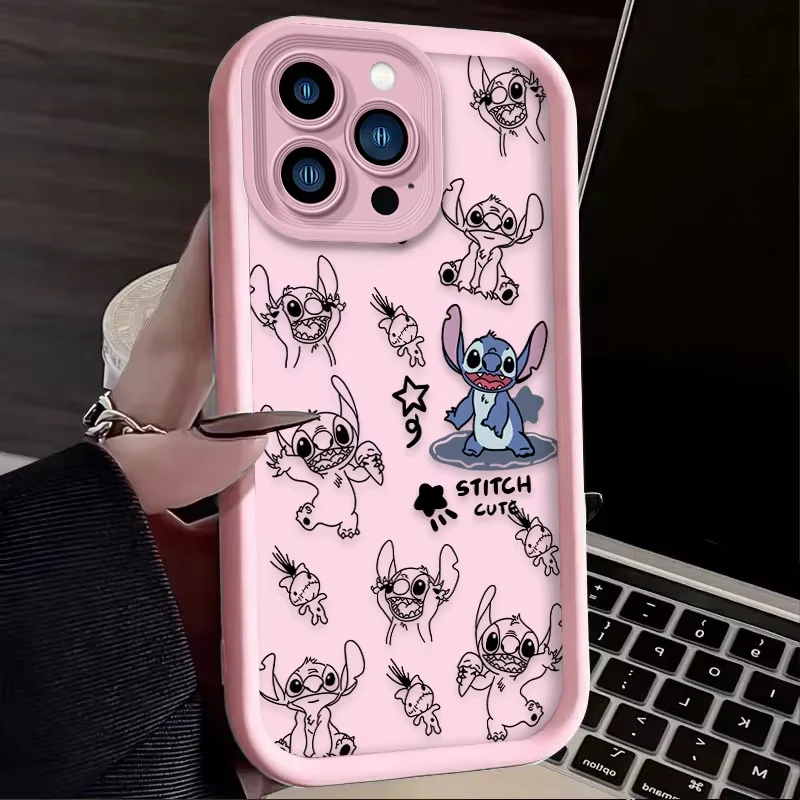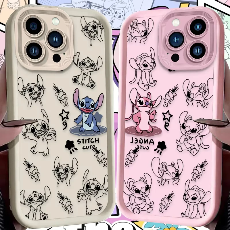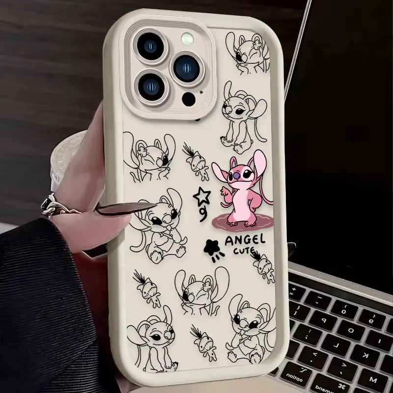 Comprar Funda de teléfono bonita de Stitch Angel de Disney para iPhone 16 15 14 13 12 11 Pro Max 7 8 Plus XR XS Max, funda trasera suave de silicona a prueba de golpes
