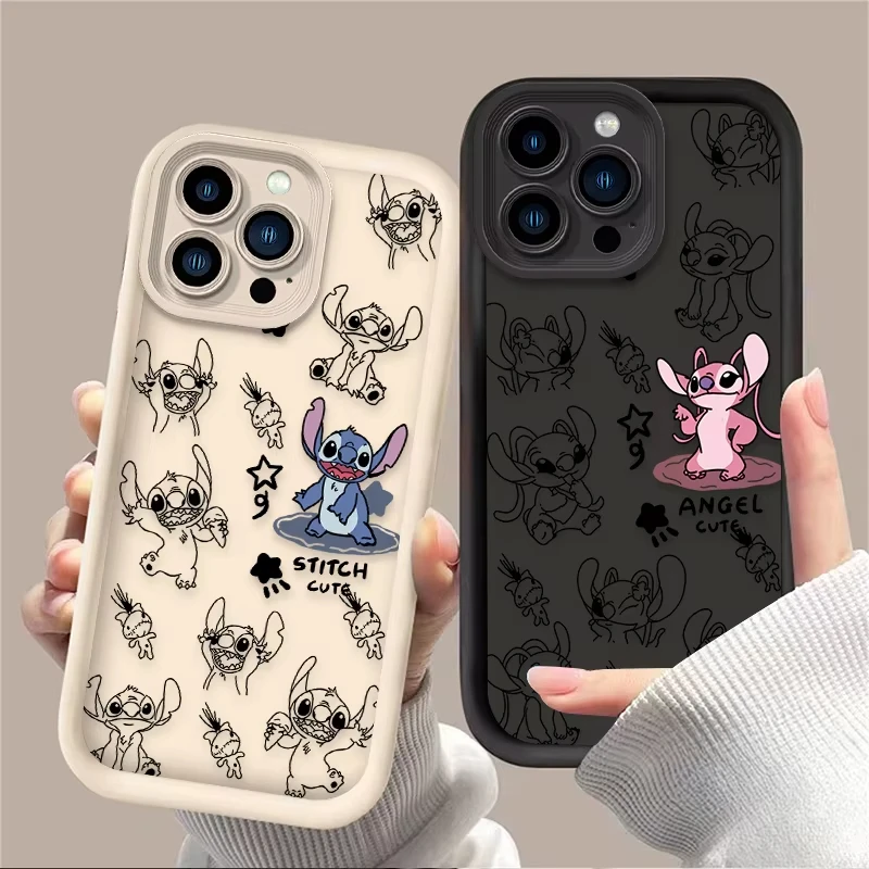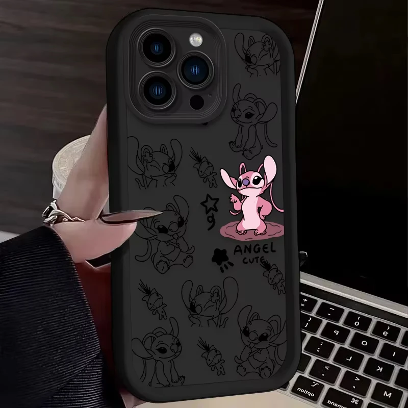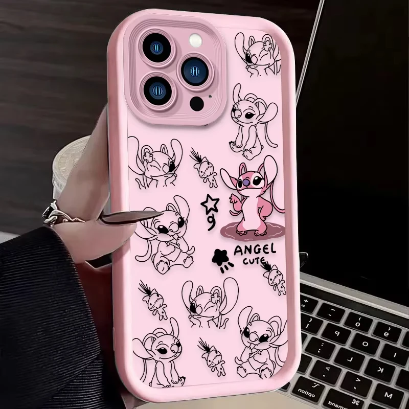 Funda de teléfono bonita de Stitch Angel de Disney para iPhone 16 15 14 13 12 11 Pro Max 7 8 Plus XR XS Max, funda trasera suave de silicona a prueba de golpes